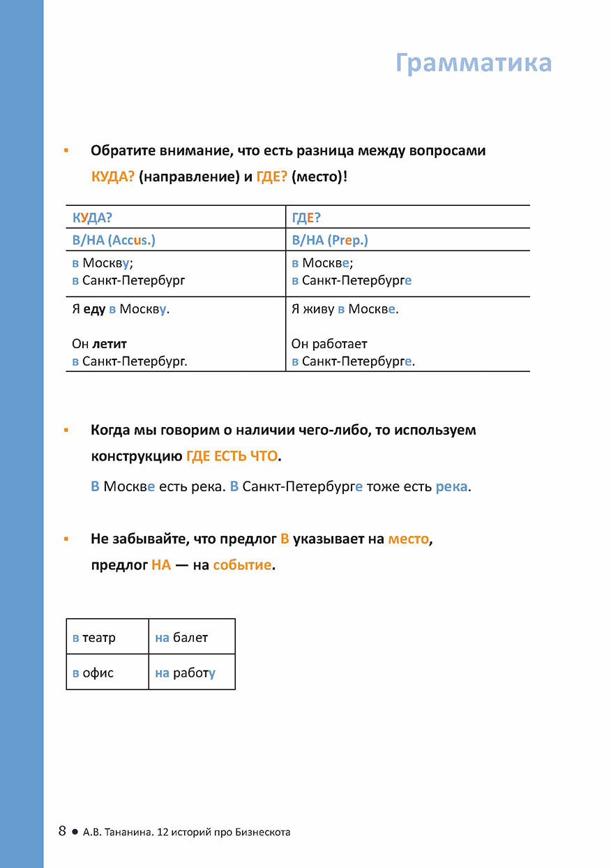 12 историй про Бизнескота. Предлоги места и направления и глаголы движения в историях и диалогах