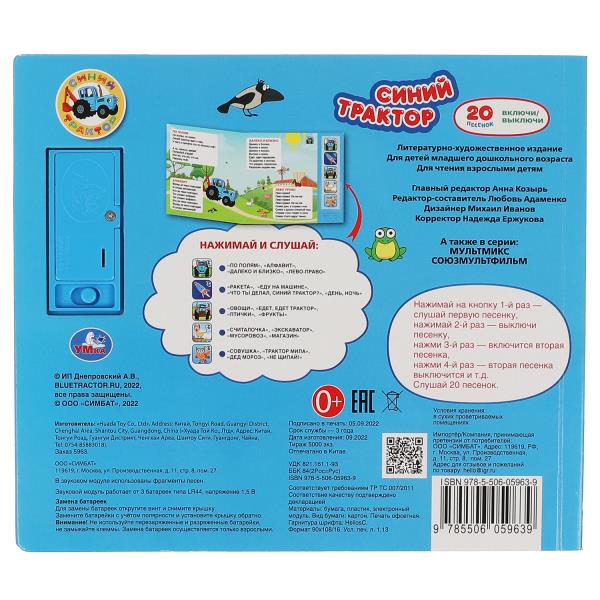 20 centimes. Синий ТРАКТОР (5 кн. 20 песен) 200х175мм 10стр Умка в кор.32шт