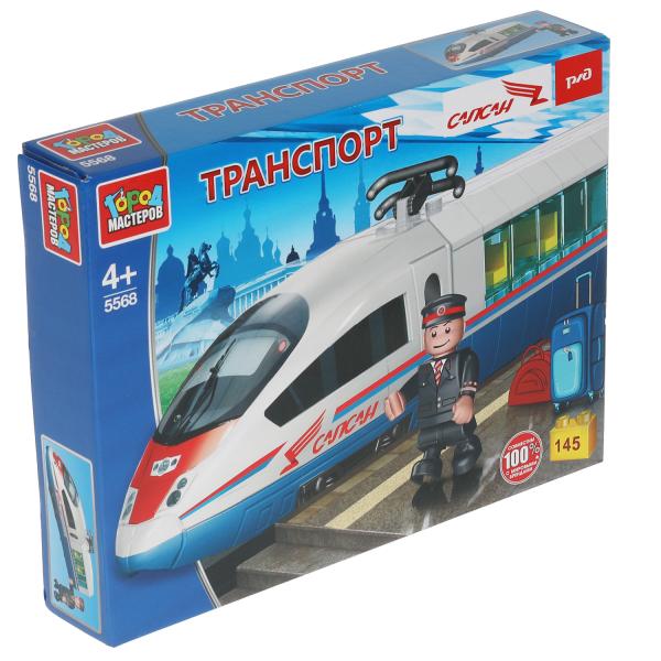 5568-KK РЖД конструктор сапсан: СКОРОСТНОЙ ПОЕЗД, 145 дет. Grands maîtres en cor.2*8шт