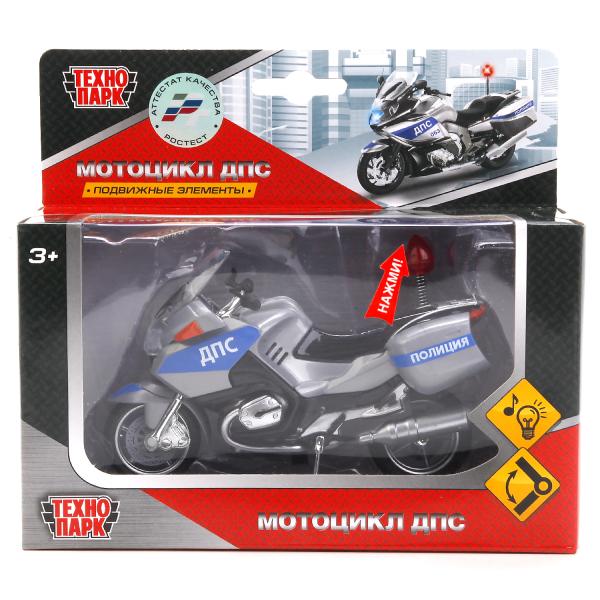 586856-R1 244510 МОДЕЛЬ "ТЕХНОПАРК" МЕТАЛЛ. МОТОЦИКЛ ДПС, 12,5СМ, СВЕТ+ЗВУК, ПОДВИЖ. ЭЛЕМЕНТЫ В КО