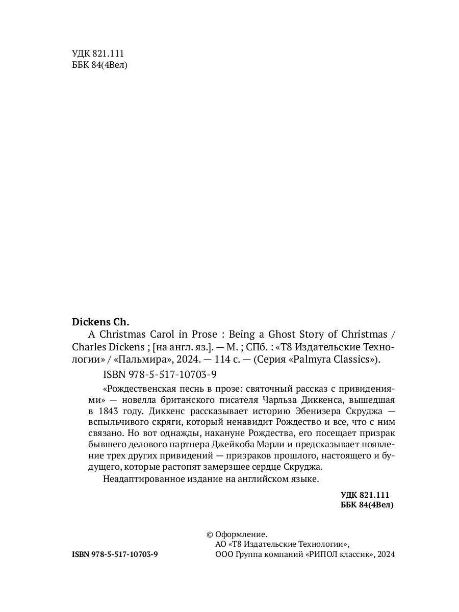 Un chant de Noël en prose. Être une histoire de fantômes de Noël (на англ.яз.)