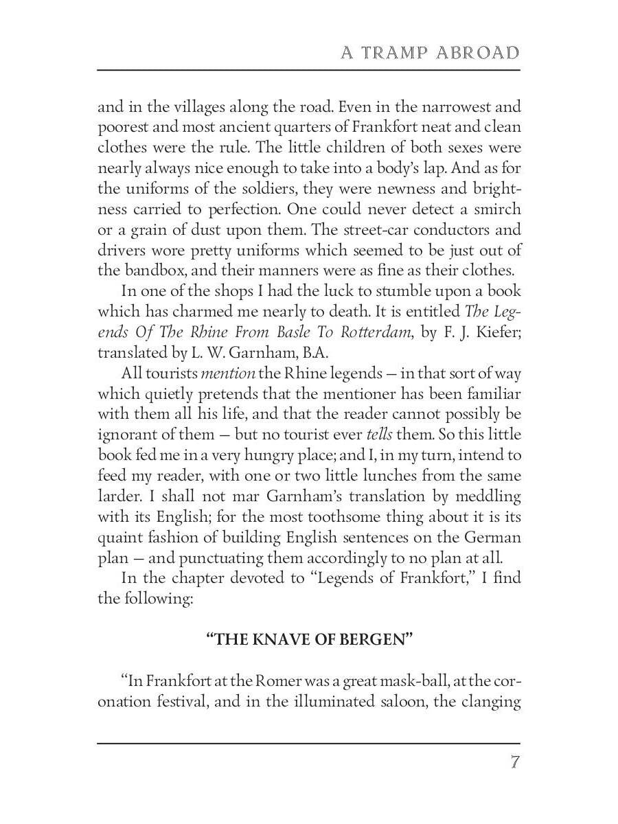 Auteur : Twain M., « A Tramp Abroad = Бродяга за границей: на англ.яз » : Mark Twain (1835-1910) était un écrivain, journaliste et éditeur américain. Parmi ses romans les plus célèbres figurent « Les Aventures de Tom Sawyer » et sa suite, « Les Aventures de Huckleberry Finn ». La plupart de ses meilleures œuvres couvrent de nombreux genres tels que l'humour, la satire et la fiction philosophique. « A Tramp Abroad » est une œuvre semi-autobiographique de littérature de voyage. Le livre raconte le voyage passionnant de Twain à travers l'Europe centrale et méridionale, accompagné d'un personnage fictif nommé Harris, inspiré de Joseph Twichell, l'ami le plus proche de Mark.