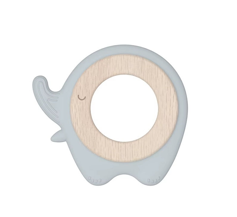 Des rêves d'ange. SK2016 Прорезыватель силиконовый с деревянным кольцом "Слоник" (голубой)