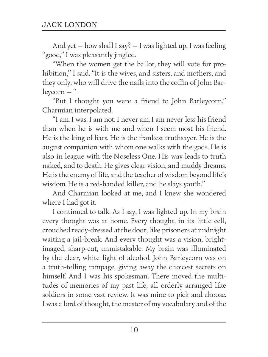 Auteur : London Jack, « John Barleycorn et Jerry des Îles = Джон Ячменное Зерно и Джерри-островитянин. T. 10 (на английском языке) » : Jack London était un romancier, journaliste et militant social américain. Pionnier du genre de la fiction de magazine et prototype de la science-fiction, il est devenu l'un des premiers écrivains à acquérir une renommée mondiale et une immense fortune. En tant que roman autobiographique adoptant le nom d'une vieille chanson folklorique anglaise, John Barleycorn raconte l'histoire des luttes de l'auteur contre l'alcoolisme à différentes étapes de sa vie. Il aborde également divers thèmes tels que la masculinité, l'amitié, les expériences de vie et la renommée littéraire. Jerry des Îles raconte l'histoire d'un terrier irlandais nommé Jerry et de ses aventures sur un navire, l'Arangi, chargé de livrer des esclaves.
