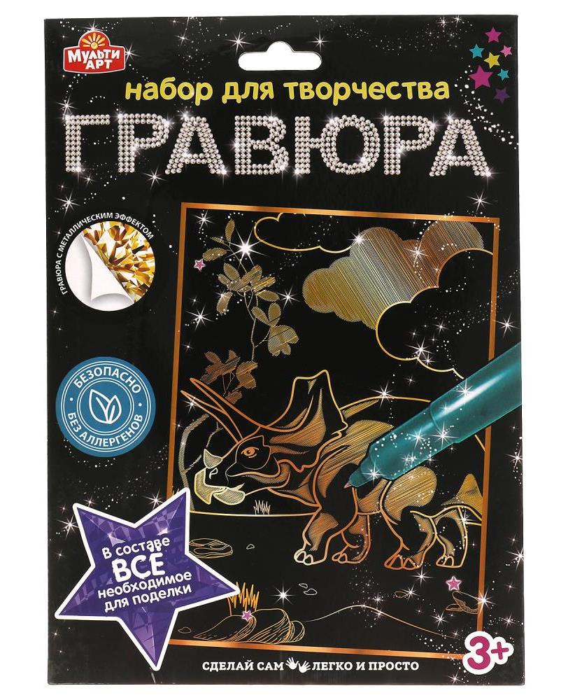 Набор для творчества «Гравюра. Динозавр» ТМ «МультиАрт» - отличный подарок для ребёнка, который будет способствовать развитию его творческих способностей: