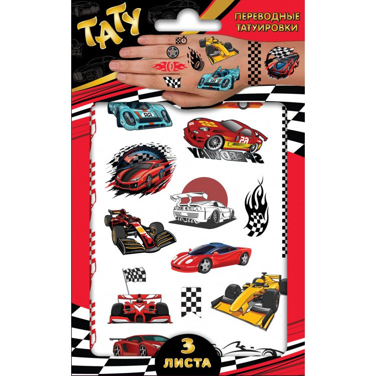 Lecture ND. Переводные татуировки "Гоночные машинки" 3 listes art.306119