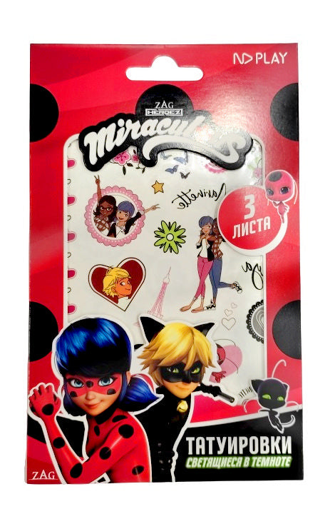 Jeu "ND Play. Переводные татуировки светящиеся "Леди Баг и Супер-Кот" 3 listes, pour 3 art.307042".