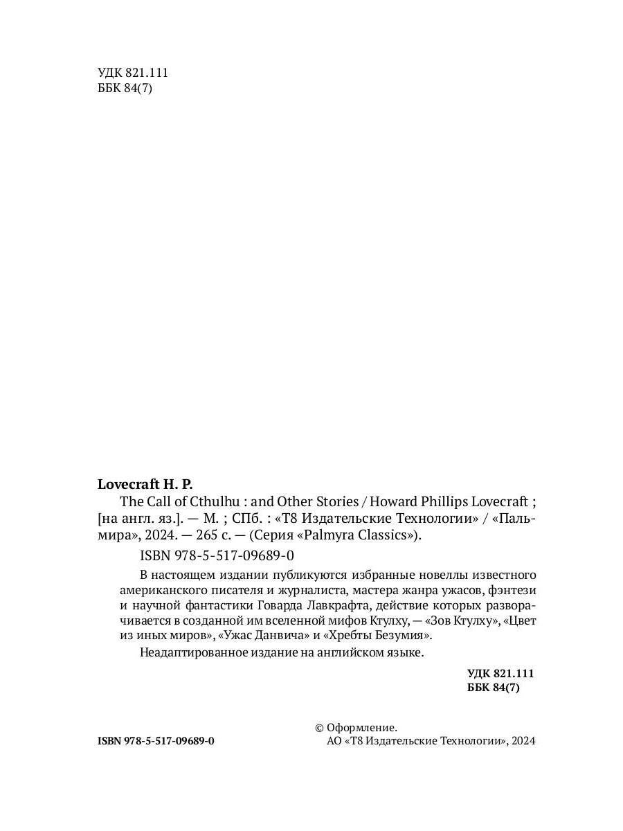 #ASTTD# Termes de recherche : Лавкрафт Г.Ф. , Lavkraft GF , Palmyra , Т8 RUGRAM , Palmira , T8 RUGRAM , Palmyra Classics , Palmyra Classics , 9785517096890 , 978-5-517-09689-0 , 1976230