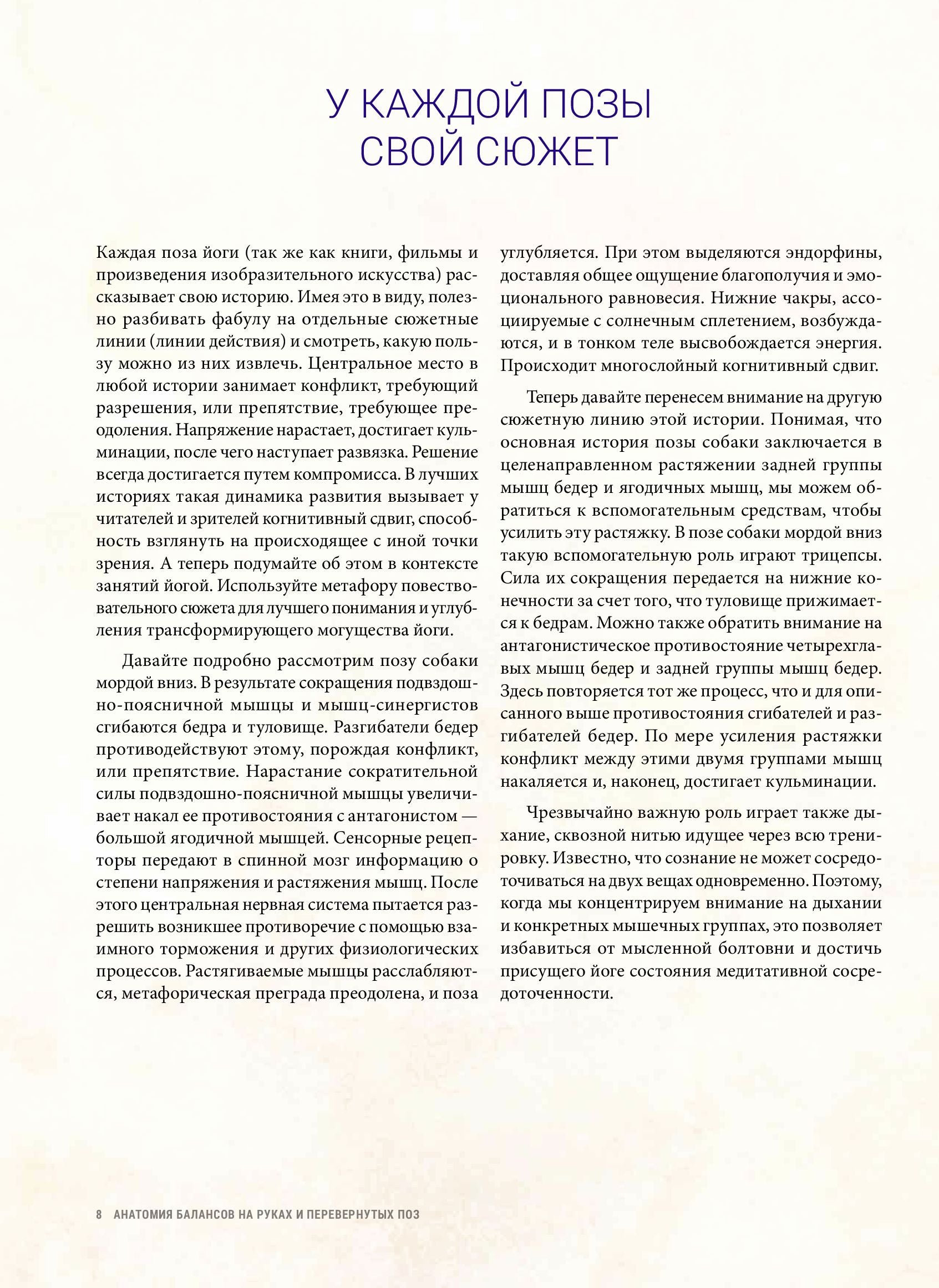 С помощью полноцветных трехмерных иллюстраций костей, мышц, сухожилий и связок доктор Рэй наглядно рассказывает об анатомии, биомеханике и физиологии древнего искусства йоги, попутно расшифровывая каждую позу. Книги серии «Инструктор йоги» содержат подробные иллюстрированные инструкции по выполнению асан с объяснением их научной подоплеки, что позволяет извлечь из них максимум пользы, какой бы стиль йоги вы ни практиковали. Разобравшись в анатомических вопросах, вы научитесь преодолевать трудности при выполнении тех или иных упражнений, оптимизировать свои занятия и избегать травм.
