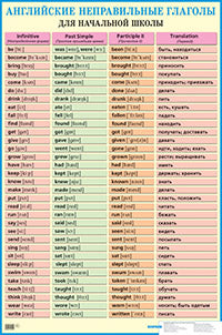 Handling time: 24 days На плакате представлены неправильные глаголы английского языка в соответствии с программой начальной школы.