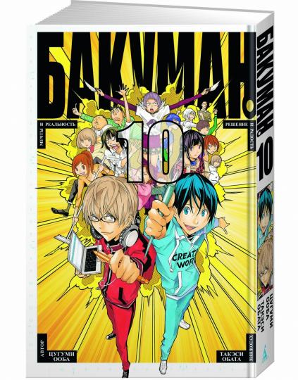 Сайко и Сюдзин ведут в счете в противостоянии новых сериалов Муто Асироги и Эйдзи! Но внезапно при выпуске танкобонов Эйдзи резко вырывается вперед.Смогут ли наши герои закончить свою мангу так, как задумали изначально? Получат ли они аниме-сериал? И что ждет их в конце этого тернистого пути?.. Пять причин купить 1Манга от творческого дуэта создателей культовой манги Death Note - сценарист Цугуми Ооба и иллюстратор Такэси Обата. 2В центре сюжета - история о тернистом пути к славе двух школьных друзей, решивших стать известными мангаками. «Бакуман» держит в напряжении от начала до последних глав, но в манге немало юмора и есть романтическая линия. 3Ошеломительный финал одной из самых уникальных манг! Смогут ли талантливые молодые мангаки добиться своей цели? И самое главное - сможет ли исполнить Моритака Масиро свое обещание, данное однажды решившей стать сейю Михо Адзуки? 4«Бакуман» полон действия, интриг и внезапных поворотов сюжета, как захватывающий боевик, детектив или шпионский триллер. 5Серия «Бакуман» может стать прекрасным «учебным пособием» для тех, кто хочет связать свою жизнь с мангой или комиксами.