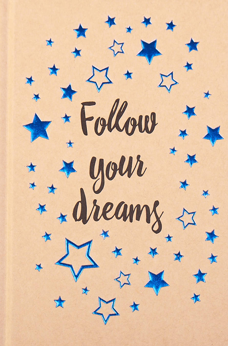 Блокнот. Следуй за мечтой. Крафт, объемные элементы, тиснение синее, 160 с, кремовая бумага