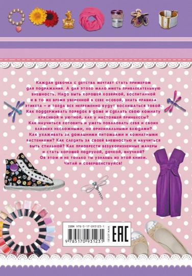 Каждая девочка с детства мечтает стать примером для подражания. А для этого мало иметь привлекательную внешность. Надо быть хорошей хозяйкой, воспитанной и в то же время уверенной в себе особой, знать правила этикета - и тогда все непременно будут восхищаться тобой. Как поддерживать порядок в доме и сделать свою комнату красивой и уютной, как у настоящей принцессы? Как научиться готовить и уметь побаловать себя и своих близких несложными, но оригинальными блюдами? Как ухаживать за домашними питомцами и комнатными растениями? Как следить за своей внешностью и научиться быть стильной? Как приобрести безукоризненные манеры и стать хорошей подругой, дочкой, внучкой? Об этом и не только ты узнаешь из этой книги. Для среднего школьного возраста.