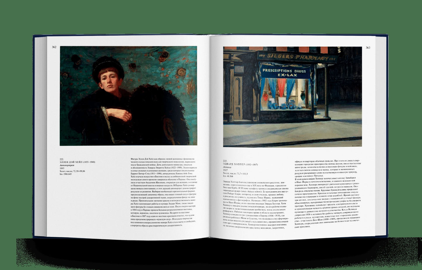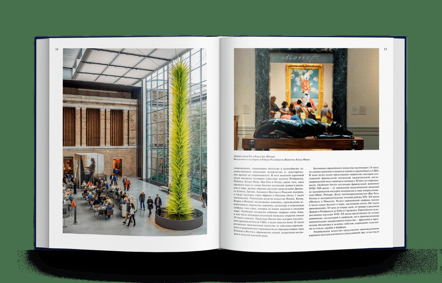 Визитной карточкой музея являются всемирно известные полотна Рембрандта и Рубенса, импрессионистов (Моне, Ренуара, Дега), постимпрессионистов (Ван Гога, Гогена) и экспериментальных течений рубежа XIX–XX веков (Матисса и Пикассо). Но не только их считают жемчужинами собрания. В музее хранится одна из самых богатых коллекций гравюр и рисунков в мире, редкие образцы наследия цивилизаций Древнего Египта, Греции, Ближнего Востока и Римской империи, а также шедевры стран Африки и Океании. Образцы предметной культуры разных эпох в соседстве с живописью и скульптурой создают контекст для понимания творчества великих мастеров прошлого и настоящего. Издание знакомит с историей развития этого американского музея, с шедеврами художественной коллекции и менее известными работами. На материале богатейших собраний музея читателю предлагается совершить путешествие во времени и пространстве по странам Европы и Америки — от искусства Средневековья до конца XX века. «Мы надеемся, что эта книга даст вам представление о разнообразии и качестве наших коллекций, а также их значении для нашего понимания истории и современности»