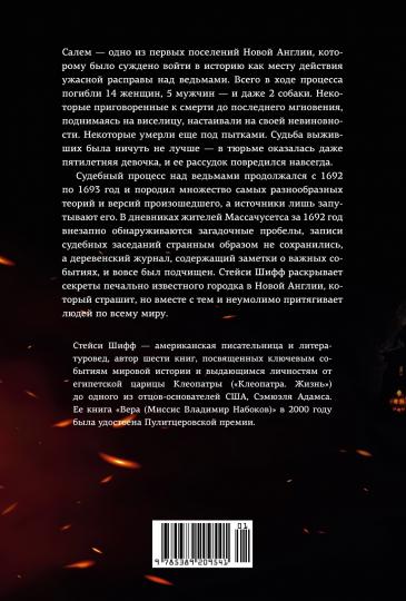 Аннотация к книге "Ведьмы.Салем, 1692" Шифф С.:Эта история началась в штате Массачусетс необычно суровой зимой 1692 года, когда дочь местного священника вдруг стала кричать и биться в конвульсиях. Спустя год, когда все закончилось, 19 мужчин и женщин оказались мертвы. Спокойная пуританская колония превратилась в сцену, на которой разыгрывались по-настоящему ужасающие события. Охота на ведьм в Салеме — это последний отголосок Средневековья в наступившей новой эпохе, уникальное историческое событие, которое легло в основу многих фильмов и художественных романов, и, без сомнения, самый знаменитый ведьмовской процесс в мире. В нем были замешаны и простые жители, и известные политики Новой Англии: беда не обошла стороной никого — даже священник не избежал виселицы. Все ополчились друг на друга: соседи обвиняли соседей, родителей, детей друг друга.Что же это было — пережиток средневековых гонений, объявший весь город массовый психоз? Стейси Шифф, выдающийся историк и блестящий рассказчик, лауреат Пулитцеровской премии, приоткрывает завесу тайн, на протяжении нескольких столетий окутывавших Салем. Впервые обстановка, сложившаяся в штате Массачусетс в конце XVII века, исследуется настолько глубоко и подробно, а преследование ведьм воссоздается настолько полно и психологически точно. В талантливом изложении Шифф салемские события предстают перед читателем настоящим детективным расследованием, одинаково важным для науки и увлекательным для широкого круга читателей. Читать дальше…