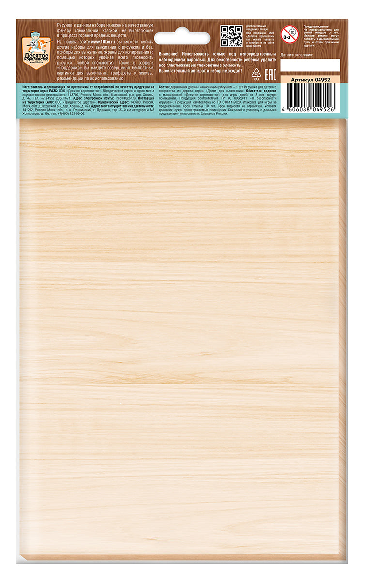 Handling time: 24 days Доска для выжигания 1 шт "Обитатели водоема" А4 (европодвес).Состав: доска с нанесенным рисунком - 1 шт. (21х28,5 см).Материалы: дерево, картон. Для детей старше 6 лет.