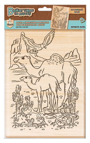 Handling time: 24 days Доска для выжигания 1 шт "Пустынный край" А4 (европодвес).Состав: доска с нанесенным рисунком - 1 шт. (21х28,5 см).Материалы: дерево, картон. Для детей старше 6 лет.