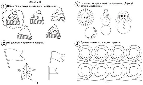 Handling time: 24 days 30 занятий для успешного развития ребенка (1 часть) 4 года. Рабочая тетрадь Перед вами тетрадь для занятий с детьми, при помощи которой малыши смогут развить произвольное внимание, логическое мышление, мелкую моторику и координацию движений руки, а также позаниматься математикой. 1 часть тетради состоит из 15 занятий, каждое из которых включает 4 задания: - задания на развитие произвольного внимания; - задания на развитие логического мышления; - задания по математике; - задания на развитие графических навыков. Время одного занятия не должно превышать...
