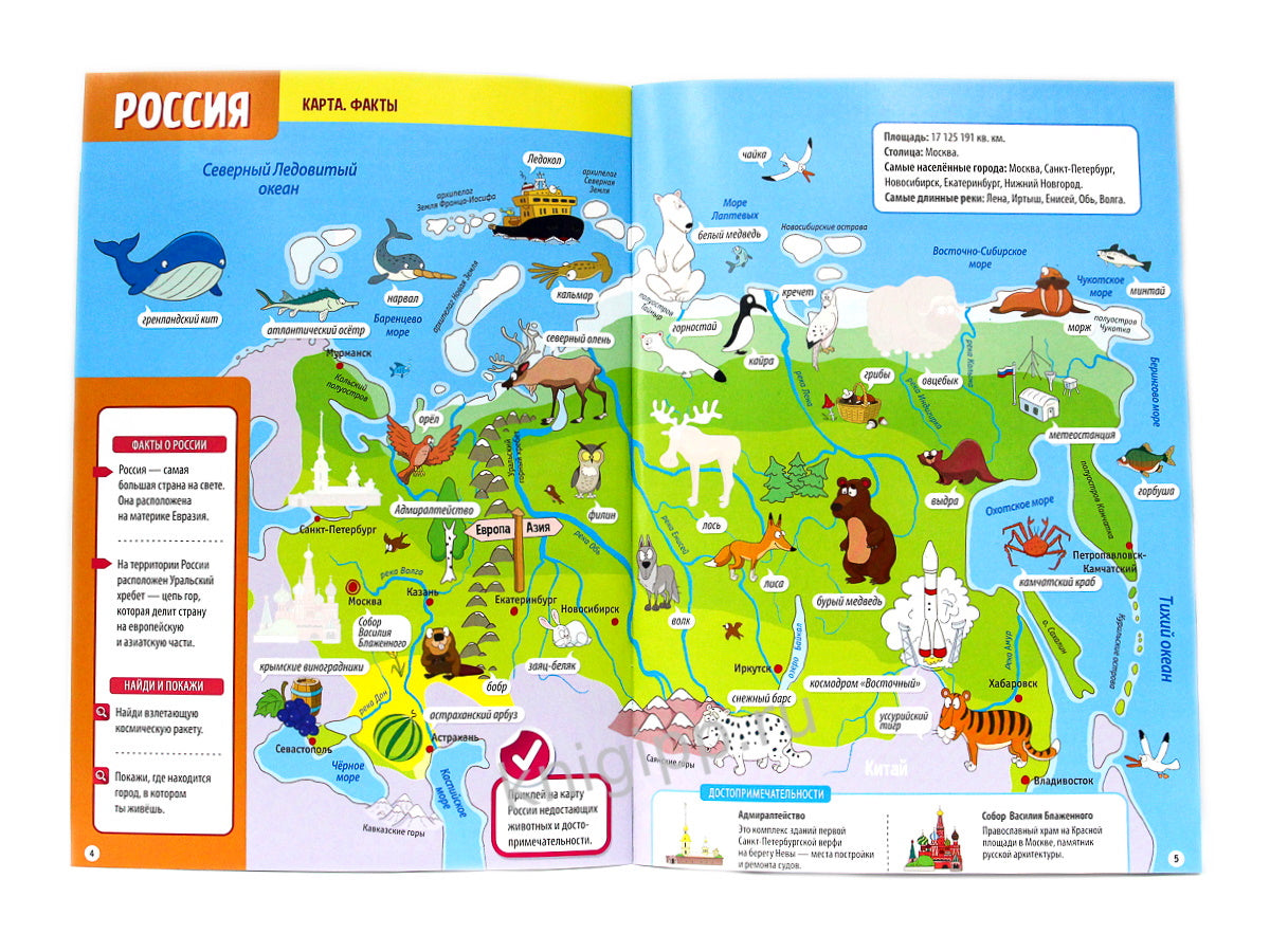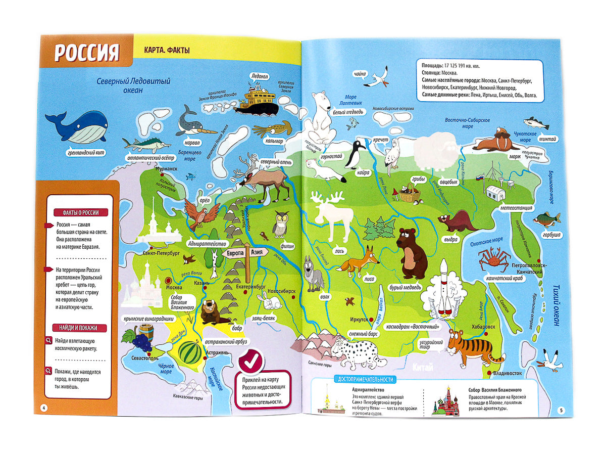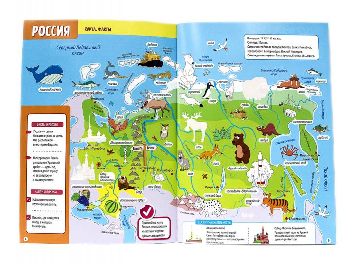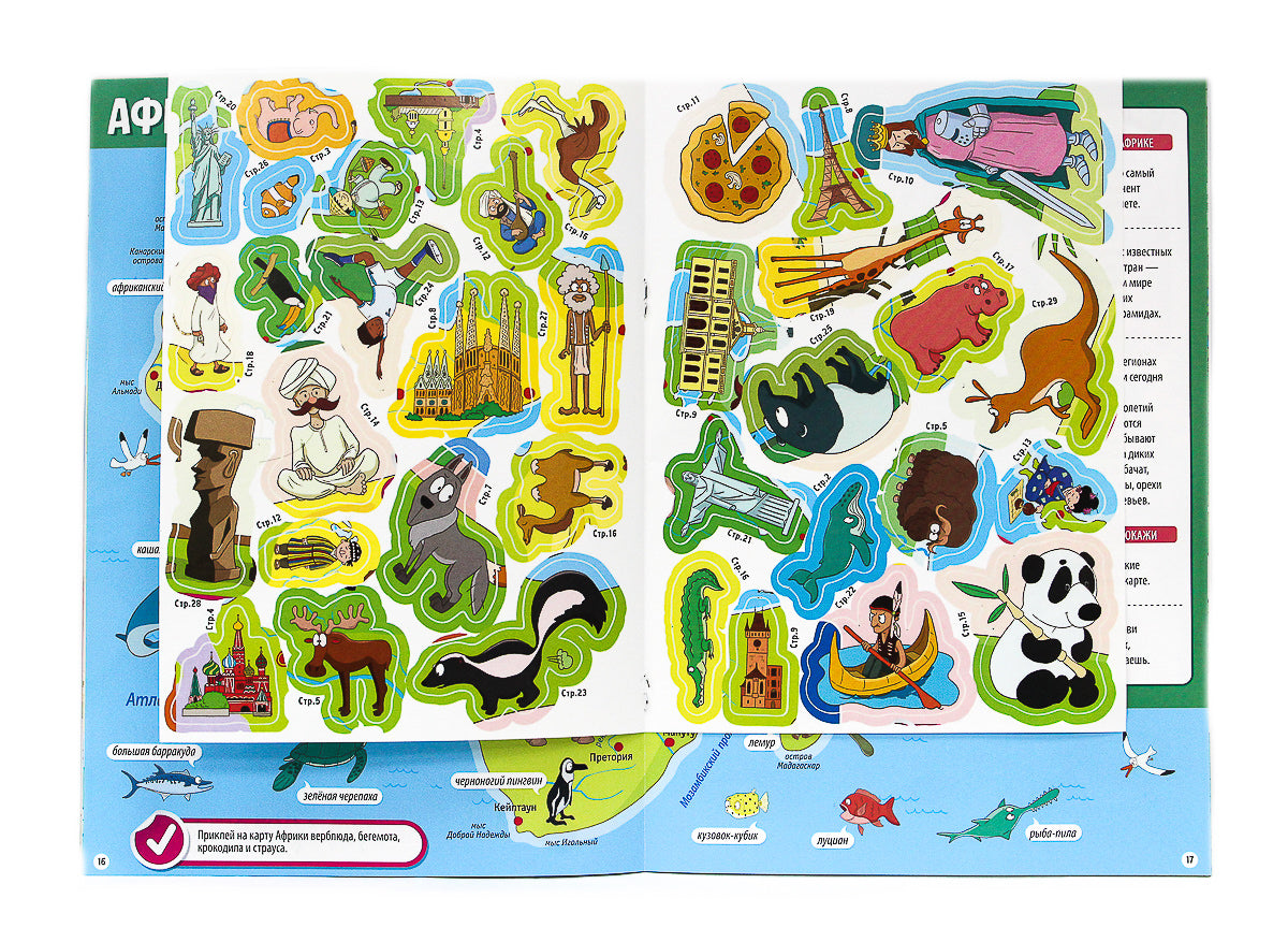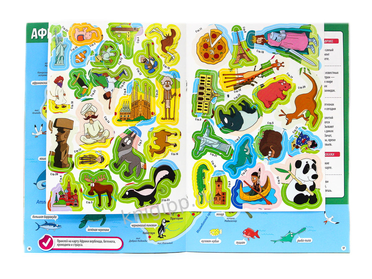 Пришла пора отправиться в кругосветное путешествие! Побывать на всех континентах, познакомиться с разными странами, узнать о самых знаменитых мировых достопримечательностях, окунуться в разнообразие животного мира, национальных традиций и кулинарии - всё это можно сделать, не выходя из дома! Географический атлас с наклейками поможет тебе в этом!Для чтения взрослыми детям.