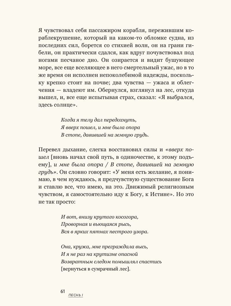 слова автора увлекают с первых страниц, создавая впечатление что Данте сквозь века обращается лично к вам; книга раскрывает тайны великого произведения, делая его понятным для любого читателя, независимо от уровня его образования; прекрасное оформление издания: золотое тиснение, суперобложка, отличное качество полиграфии; книга написана простым и живым языком, ее просто и приятно читать с первой и до последней страниц.