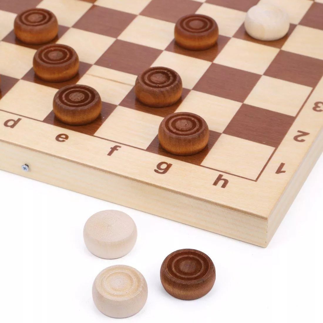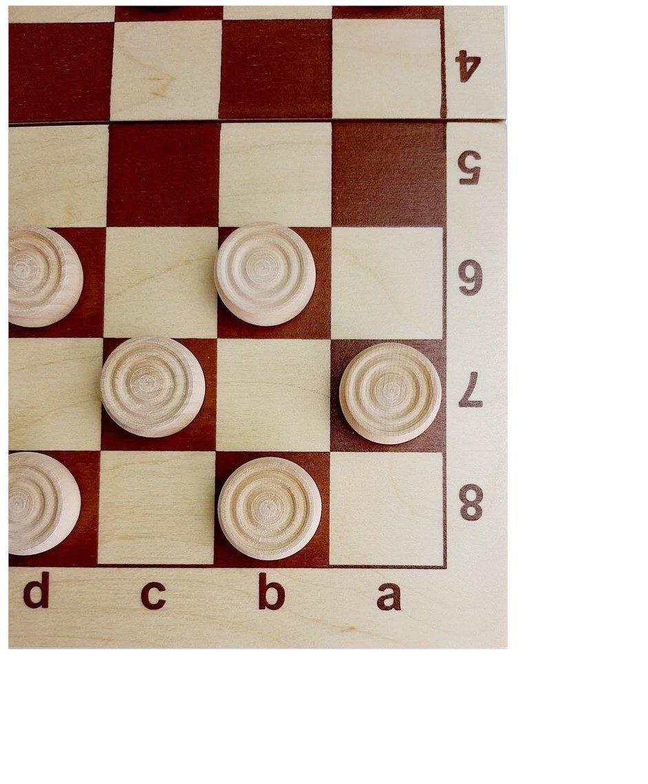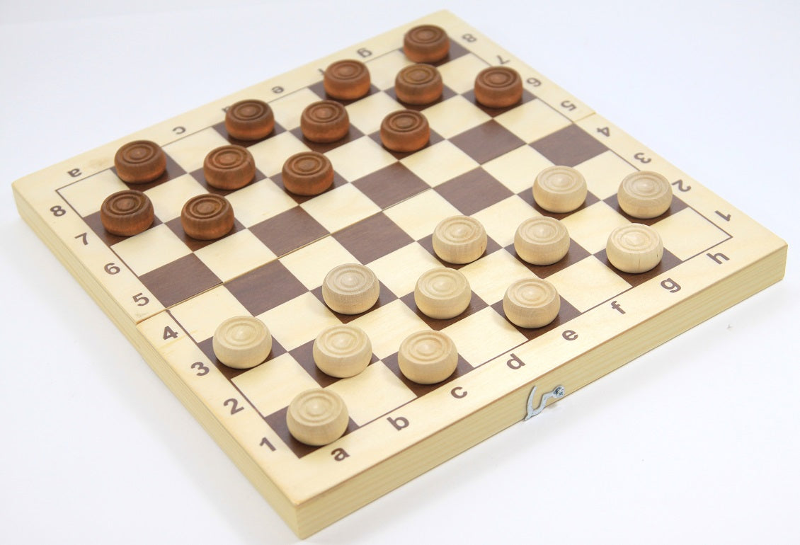 Handling time: 24 days Шашки с игровой доской на 64 (8х8) клетки - наиболее демократичная логическая игра для двоих. Простая и понятная логика позволит осваивать эту игру ребёнку в возрасте от четырёх лет. Благодаря своей логической простоте шашки стали очень популярны по всему миру, и стоит заметить, что ни у одной логической игры нет столько разновидностей - русские, бразильские, английские (американские, чекерс), пул (Pool), итальянские и поддавки.Шашки имеют презентабельный внешний вид и подходят, как для игры дома, так и в качестве турнирных. Они изготовлены из лиственных пород дерева на специализированном деревообрабатывающем автоматизированном оборудовании.Складная доска с замочком позволяет компактно хранить игру и предотвращает случайную потерю шашек.Состав игрового набора: раскладная деревянная доска на 64 клетки, размером 30х30х2,3 см (в сложенном виде 30х15х4,6 см), размер клеток 32х32 мм, 24 шашки размером 25х12 мм (белых 12 штук, темных 12 штук).