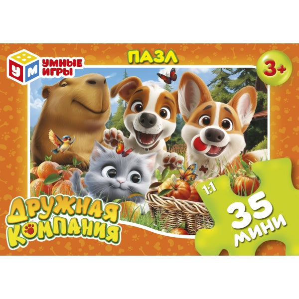 Дружная компания. Пазлы в коробке 35 деталей. 90х65х25 мм. Умные игры в уп.32шт в кор.8уп
