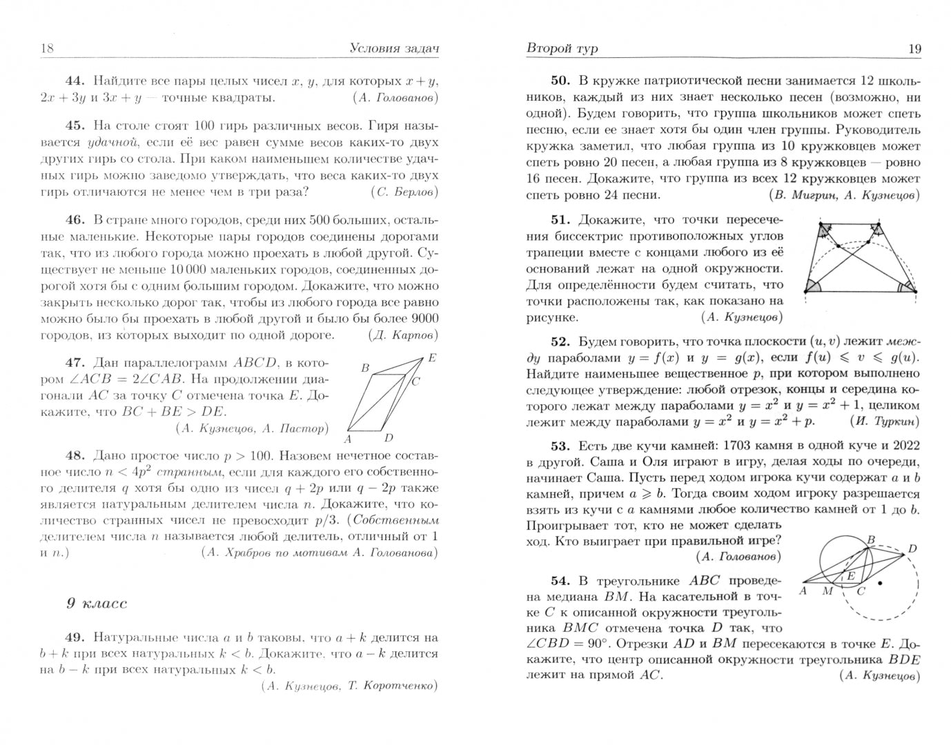 Книга предназначена для школьников, учителей, преподавателей математических кружков и просто любителей математики. Читатель найдет в ней задачи Санкт-Петербургской олимпиады школьников по математике 2022 года, а также задачи открытой олимпиады ФМЛ № 239, которая, не будучи туром Санкт-Петербургской олимпиады, по характеру задач, составу участников и месту проведения является прекрасным дополнением к ней.Все задачи приведены с подробными решениями, условия и решения геометрических задач сопровождаются рисунками.В качестве дополнительного материала приводится подборка задач олимпиады «Туймаада–2022», а также две статьи и две сказки, в которых обсуждаются решения задач, опубликованных в этом сборнике.Составление: Кохась К.П., Ростовский Д.А., Хабров А.И.