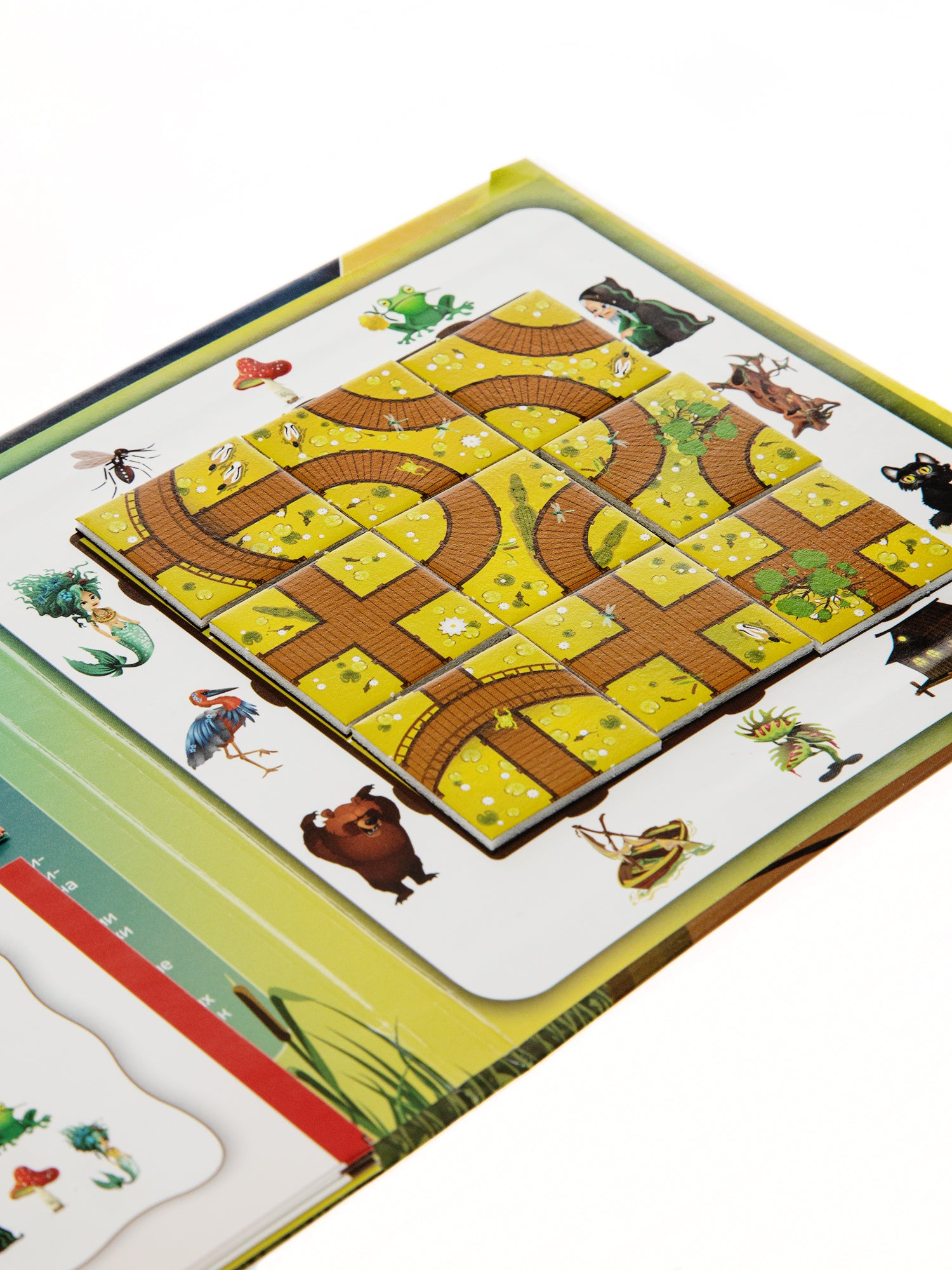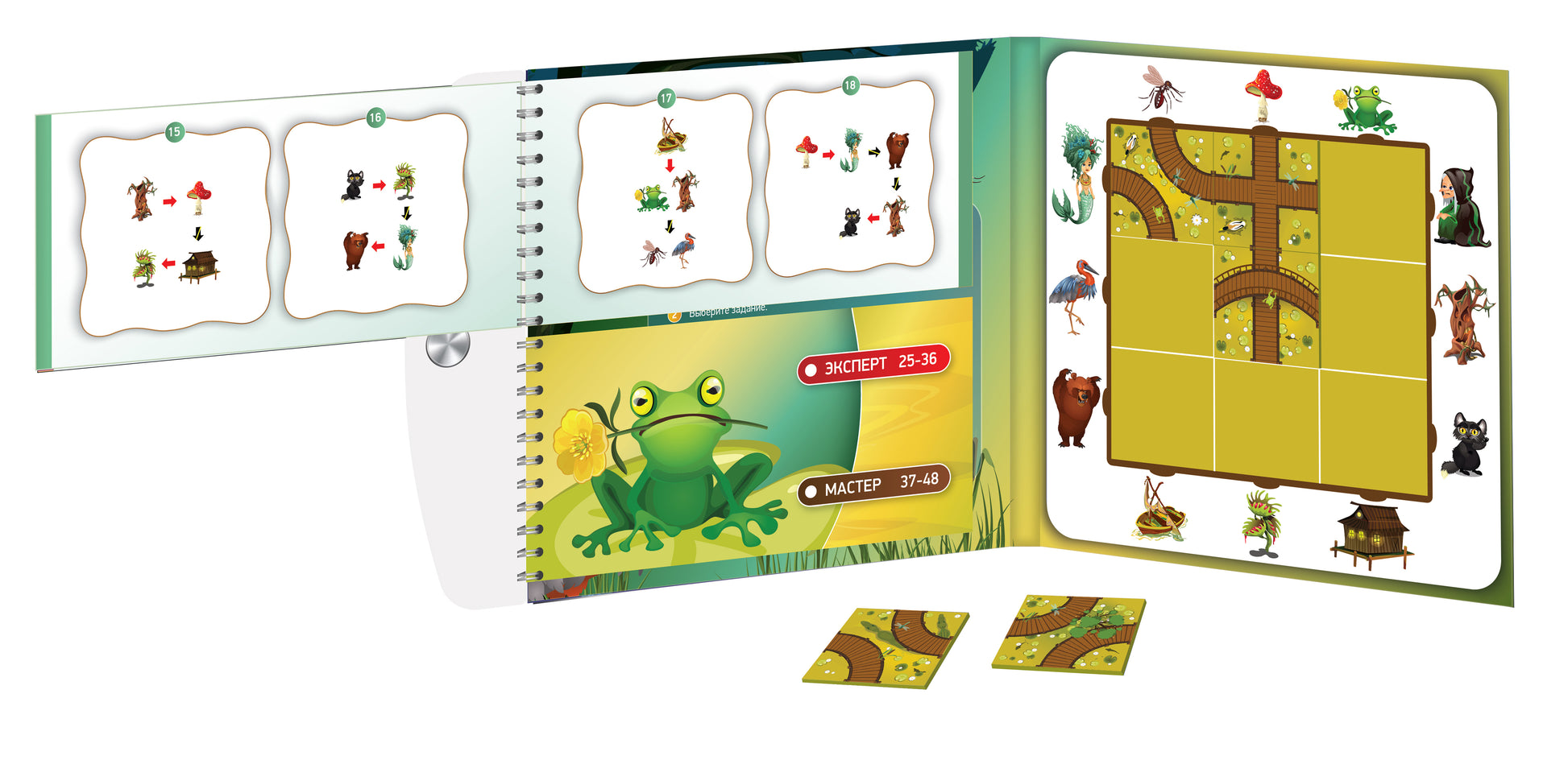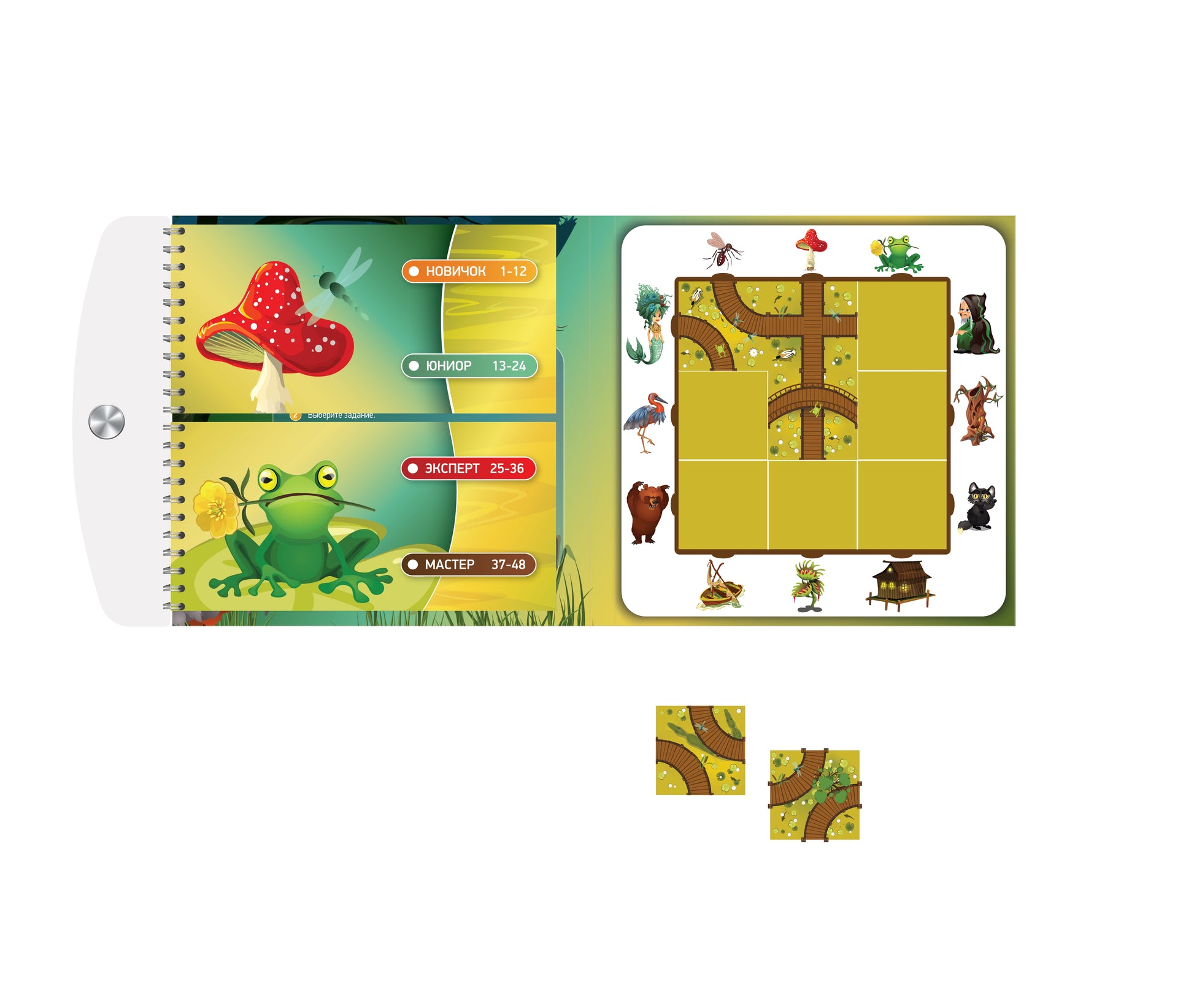 Handling time: 24 days Головоломка «Загадки болота» – это магнитная игра из серии «Игры в дорогу» на развитие логики. Игра имеет 4 уровня сложности, предназначена для детей от 5 лет, для 1 игрока. Состав игры: магнитные детали – 9 шт. (2,7 х 2,7 см), буклет с 48 заданиями 4 уровней сложности. Материалы: вспененный полимер, магнитный винил, магнитомягкое железо, картон, бумага, пластик. Игра представляет собой книжку на пружинке размером 15,5 х 14,5 см, внутри которой содержится игровое поле и буклет с заданиями. Игру такого формата удобно взять с собой в дорогу, путешествие или общественные места.