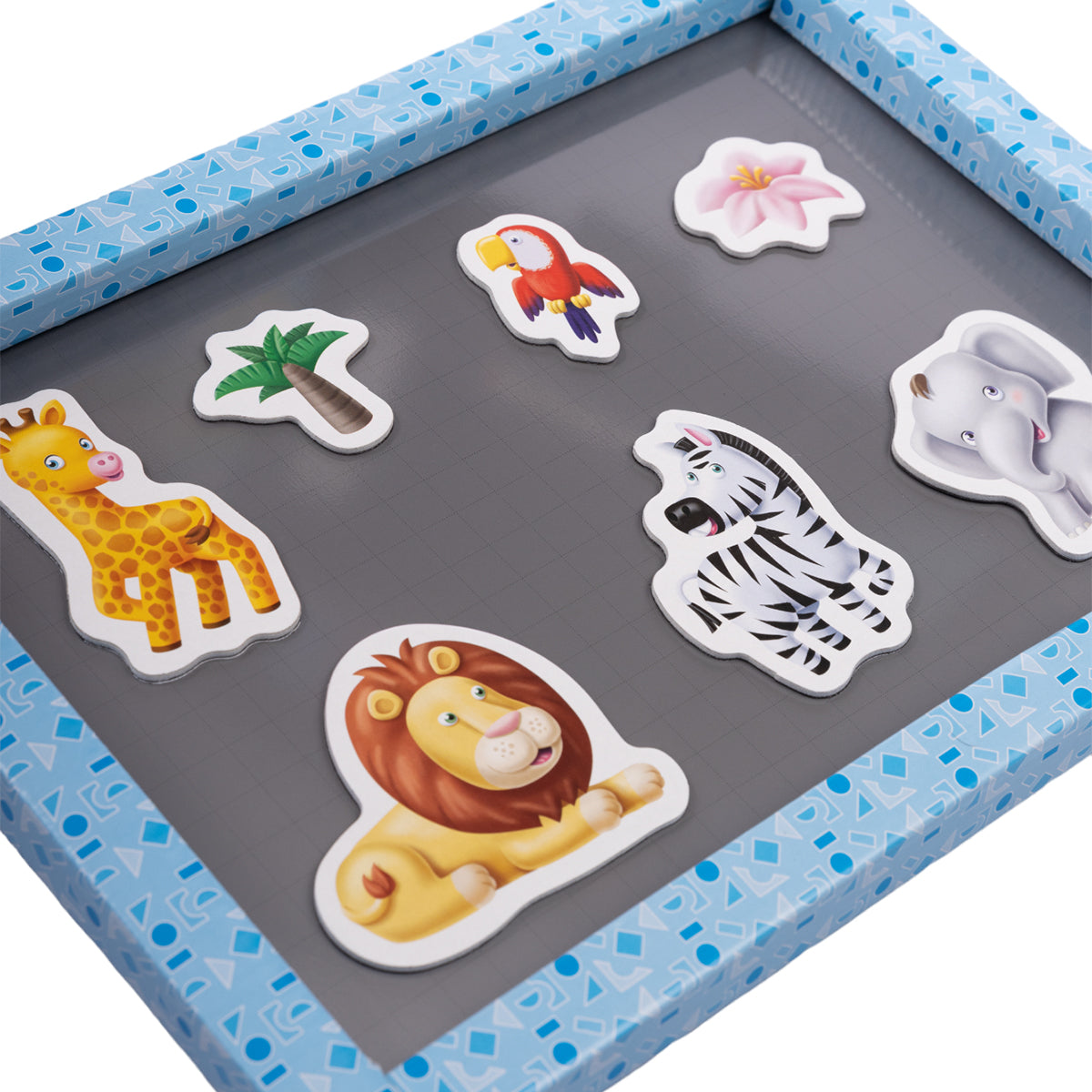 Handling time: 24 days Увлекательная обучающая игра для Вашего ребенка, начиная с трёх летнего возраста.В комплект игры входит все, что необходимо для успешного начала изучения окружающего мира:• 4 красочных игровых поля 31х21 см с разными средами обитания: джунгли, ферма, полярная зона, лес.• 36 крупных красочных магнитных фигурок и предметов.• Магнитная доска, размером 35х25,5 см. Доску можно использовать как основу для другой магнитной продукции «Десятого королевства».Игра магнитные истории «Кто где живет?» поможет малышу познать окружающий мир, развить внимательность и память, развить мелкую моторику, весело и с пользой провести время.Играть в эту игру очень просто! Нужно подобрать соответствующую фигурку животного для каждого игрового поля: джунгли, ферма, полярная зона, лес.1. Выберите игровое поле и разместите его на магнитной доске.2. Для каждого игрового поля подберите соответствующих животных, которые живут именно в этой среде обитания.3. Попросите Вашего малыша назвать каждое животное и рассказать о нем.4. Можно усложнить задачу разместив 1-2 животных в чужой среде обитания. Пусть ребенок найдет ошибку и объяснит откуда эти животные и заменит их на «нужные».Каждый из покупателей может найти у нас большой ассортимент магнитных историй , выпускаемых «Десятым королевством» по доступной цене, а также получить скидки , начиная от суммы в 1000 руб.