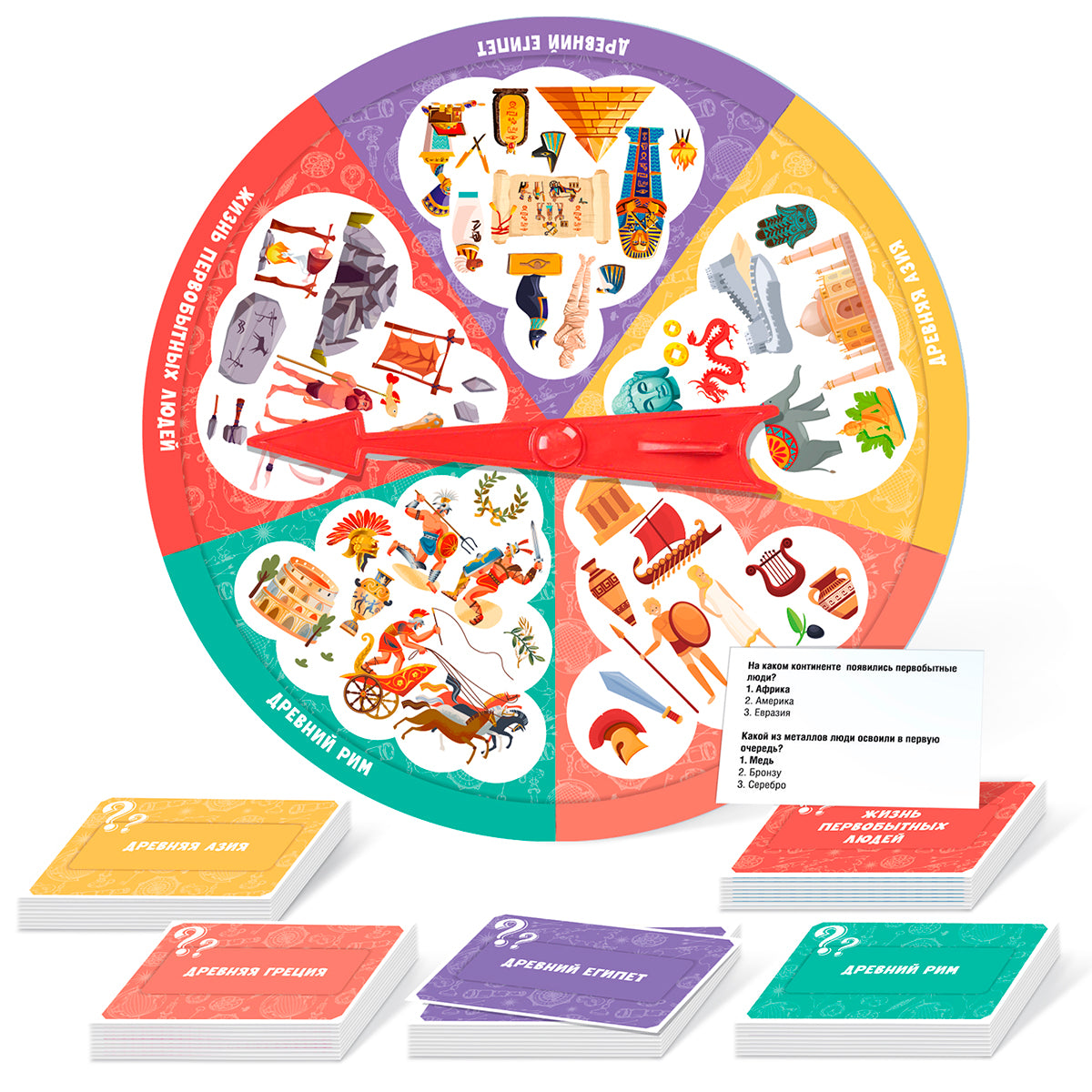 Handling time: 24 days Игра настольная Викторина "История Древнего мира". Состав игры: картонное игровое поле со стрелкой (20х20 см) – 1 шт;карточки (6,5х4,5 см) – 75 шт. Материалы: картон, полимерный материал.Игра рассчитана на 2-4 участников и предназначена для детей и взрослых в возрасте старше 10 лет.