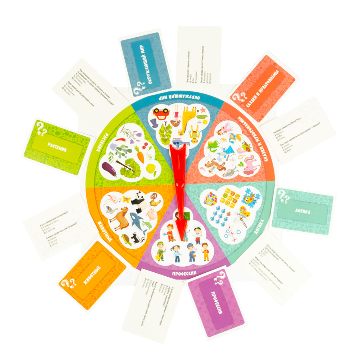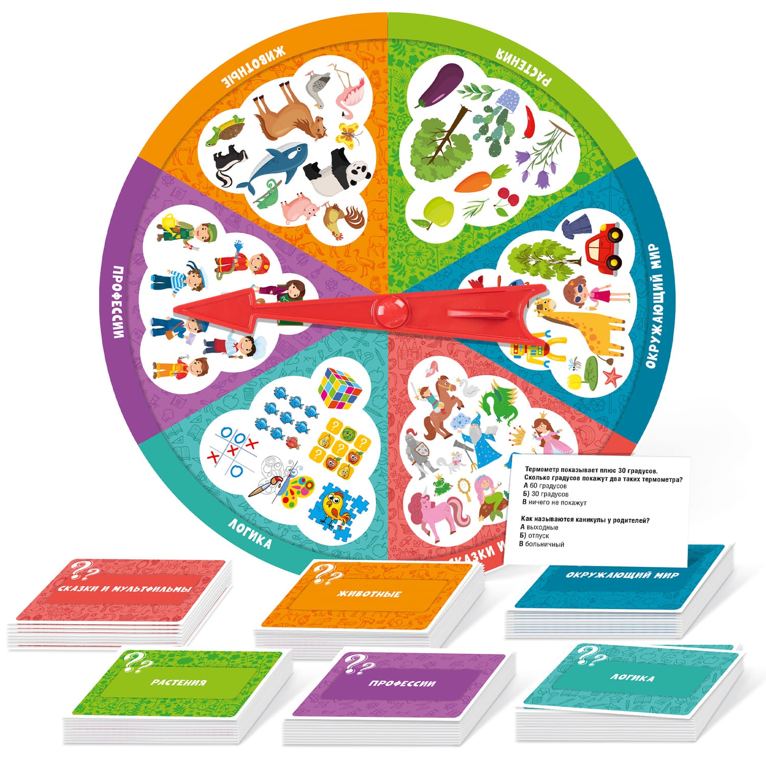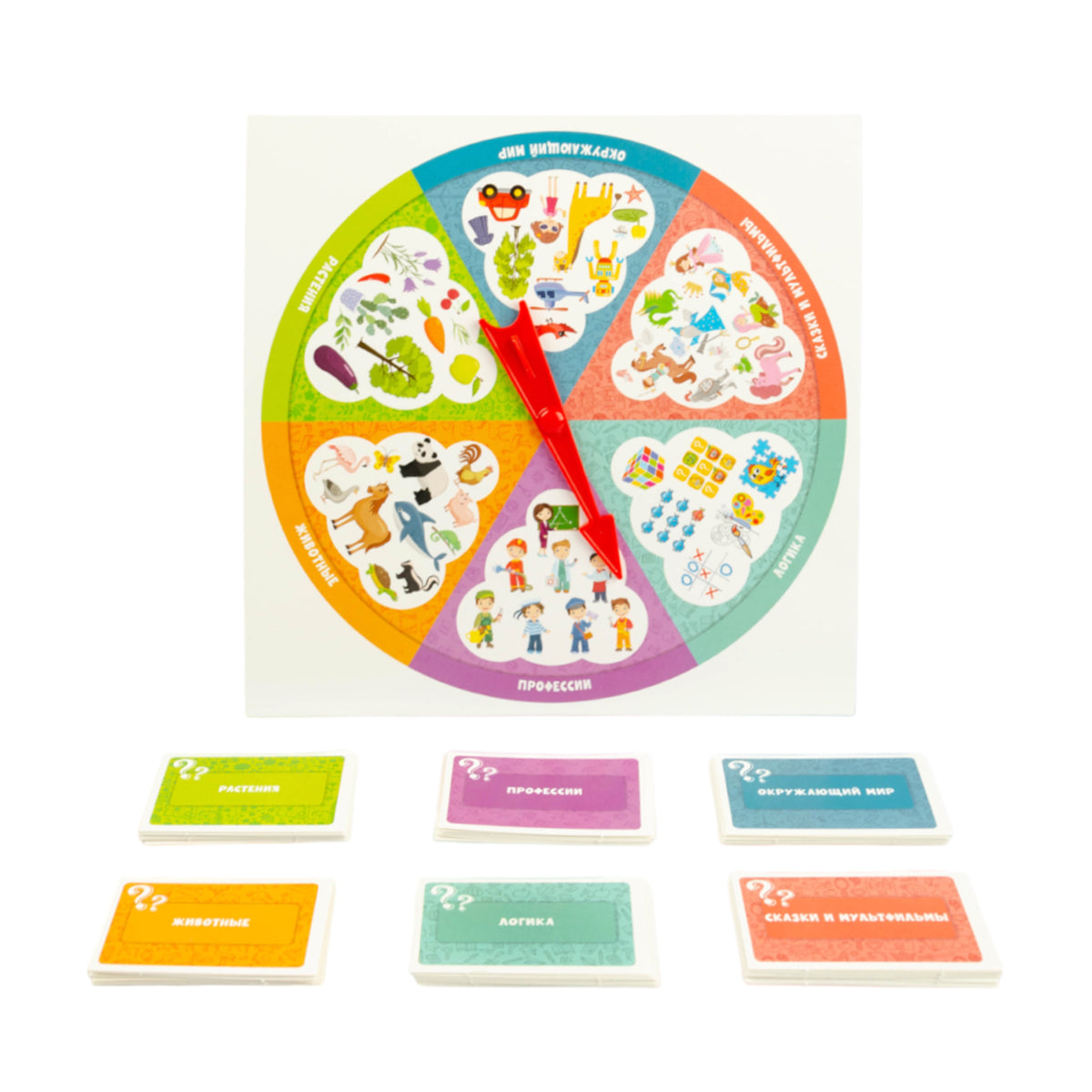 Handling time: 14 days Настольная развивающая игра-викторина "Школа дошколят" позволяет расширить кругозор и проверить уровень знаний в таких областях, как животный мир, растения, окружающий мир, сказки и мультфильмы, логика, профессии. В эту игру можно играть с друзьями!Состав игры:o картонное игровое поле с пластиковой стрелкой и 6 секторами (20 х 20 см)o картонные карточки с вопросами - 75 шт. (6,5 х 4,5 см)Игра предназначена для детей старше 6 лет и рассчитана на 2-4 игроков.Как играть?Перед началом игры нужно разделить карточки по темам, сложить стопками текстом вниз и выбрать ведущего, который будет зачитывать вопросы. Если игра проходит без ведущего, то вопросы друг другу зачитывают игроки.Внимание! Правильные ответы указаны в карточках в скобках.Игровое поле разделено на 6 секторов по темам вопросов.Первый игрок крутит стрелку, и ведущий берет первую карточку из выпавшей темы. В каждой карточке два вопроса. Если игрок правильно ответит на оба вопроса, то он оставляет карточку себе. Ход переходит к следующему игроку.Если игрок не ответил на один или оба вопроса, то карточку кладут обратно, в низ стопки, а ход переходит к следующему игроку.Когда заканчивается стопка карточек по одной из тем, игра останавливается, и игроки подсчитывают количество баллов (одна карточка - один балл). Побеждает игрок, набравший наибольшее количество баллов.Викторина "Школа дошколят" развивает эрудицию, мышление, расширяет кругозор.Подробнее с правилами игры можно ознакомиться на обороте коробки.Материалы: картон, полимерный материал.