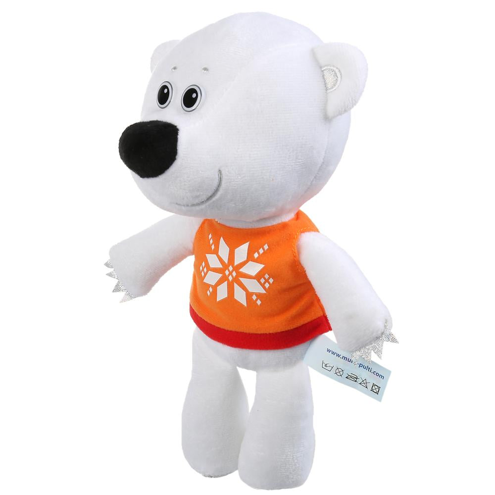 Handling time: 14 days Мягкая игрушка «Медвежонок Белая Тучка» ТМ «Мульти-Пульти» – любимый персонаж детей из мультсериала «Ми-Ми-мишки». Медвежонок одет в оранжевую жилетку с рисунком. Белая Тучка так любит учиться, поиграйте с ним в школу, вместе вы узнаете столько всего интересного. Откройте уютное кафе для игрушек и угощайте их самыми вкусными блюдами. Фантазируйте! С этой игрушкой дети смогут воссоздать уже знакомые сюжеты из мультика и придумать новые. Ребёнку не придётся скучать по любимому герою мультсериала, ведь теперь он всегда будет с ним! Белая Тучка будет рад встрече со своими друзьями. Собери всю коллекцию мягких игрушек из мультсериала «Ми-ми-мишки»! Игрушку удобно брать в гости, на прогулки и в поездки. Игра с игрушкой «Медвежонок Белая Тучка» ТМ «Мульти-Пульти» развивает: - воображение и фантазию - тактильное восприятие - социально-коммуникативные навыки Игрушка изготовлена из гипоаллергенных материалов. Размер: 20 см. Материал: текстиль + металл. Рекомендовано детям от 3 лет.