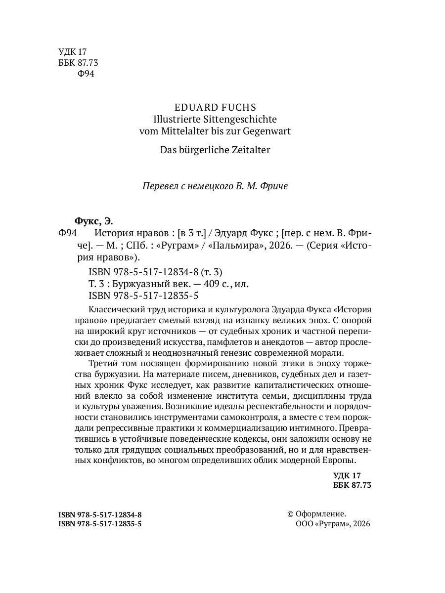 #ASTTD# Search Terms: Фукс Э. , Fyks E. , Пальмира , Т8 RUGRAM , Palmira , T8 RUGRAM , История нравов , Istoriya nravov , 9785517128348 , 978-5-517-12834-8 , 2162923