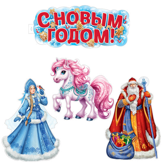 Handling time: 26 days Вырубные фигурки помогут украсить стены, мебель, двери, окна и другие поверхности детского сада, школы, комнаты и прочие поверхности, прикрепив на двусторонний скотч или скрепку. Они не только сделают любой интерьер праздничным, но и придадут настроение. В комплект входят фигурный плакат формата А2 и 3 фигурных плаката формата А3. Полный состав: — Ф-17476 Плакат вырубной А3. Снегурочка (двухсторонний, ВД-лак) — Ф-17477 Плакат вырубной А3. Дед Мороз (двухсторонний, ВД-лак) — Ф-17490 Плакат вырубной А3. Лошадка (двухсторонний, ВД-лак) — ФБ-17541 Плакат вырубной А2. С Новым годом! (двухсторонний, ВД-лак)