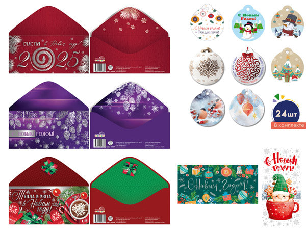 — *БК-17062 Комплект бирок. Новогодние (круглые; 24 шт: 8 видов по 3 шт.)