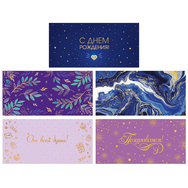 *КД-17581 Комплект конвертов для денег на склейке. Позитивного дня рождения! (5 шт.)