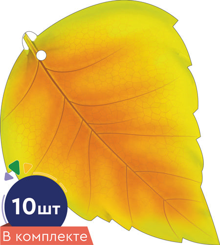 *КМ-16755 Комплект украшений на скотче. Листочки. Береза желтая (10 шт. в комплекте)