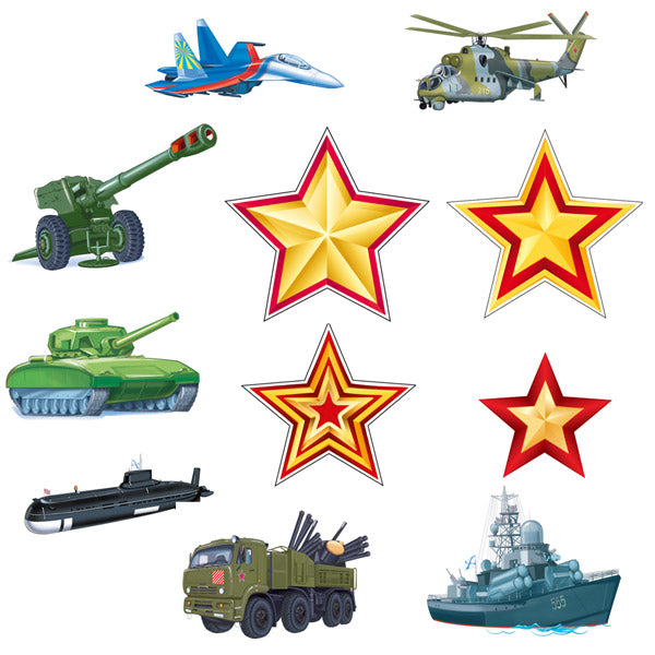 *КМ-16849 Комплект для оформления интерьера. Патриотический (7 видов военной техники и 4 звезды)