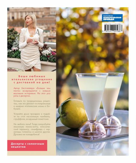 Десерты с солнечным акцентом. Ваши любимые итальянские лакомства с доставкой на дом! Автор бестселлера «Больше чем паста» возвращается с новыми вкусными историями. На этот раз речь о десертах. Готовьте по традиционным рецептам, как это делают гостеприимные и щедрые итальянские мамы и бабушки. Устройте дома праздник и подайте на стол пасхальную чамбеллу, струффоли, воздушный панеттоне. Восхительные рецепты из доступных ингредиентов. Не любите печь? Тогда попробуйте лимонную панна-котту, классический тирамису, семифредо с черничным топингом и многое другое. Духовка не понадобится! Пять причин купить 1Солнечная Италия на вашей кухне без хлопот и редких ингредиентов. Легко и доступно! 2Аутентичные рецепты от автора бестселлера «Больше чем паста», секреты итальянских мам и профессиональных шеф-поваров. 3Пошаговые инструкции, гастрономические легенды и знаменитые итальянские десерты, собранные в одной книге. 4Не хотите возиться с духовкой? И не нужно! Целая глава посвящена рецептам без выпечки. 5Праздничное настроение в любое время года: празднуем Пасху и Рождество, 8 марта и День отца с итальянским акцентом!