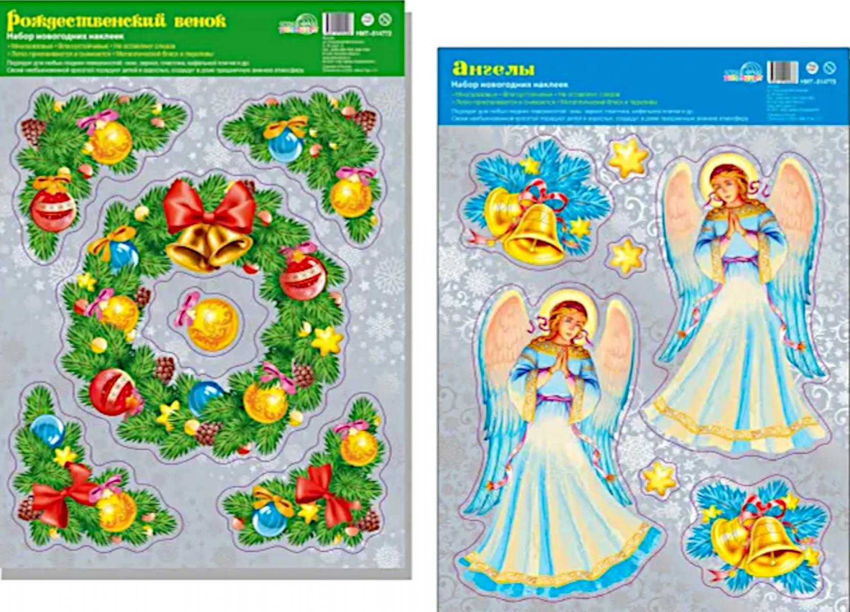 Handling time: 14 days Чудесные украшения помогут сделать любой интерьер интересным, создать уют и праздничную зимнюю атмосферу. Они несомненно порадуют и детей, и взрослых. Многоразовые наклейки легко приклеиваются и снимаются, не оставляя следов на любых гладких поверхностях — окнах, зеркалах, пластике, кафельной плитке и др. В комплект входят 2 новогодние наклейки формата А4+ с серебряной металлизацией. Полный состав: — НМТ-14770 Новогодние наклейки на окна А4+. Ангелы и колокольчики. Серебр. метал., многораз. — НМТ-14772 Новогодние наклейки на окна А4+. Рождественский венок (серебряная метал., многоразовые) Возможны незначительные изменения состава комплекта.