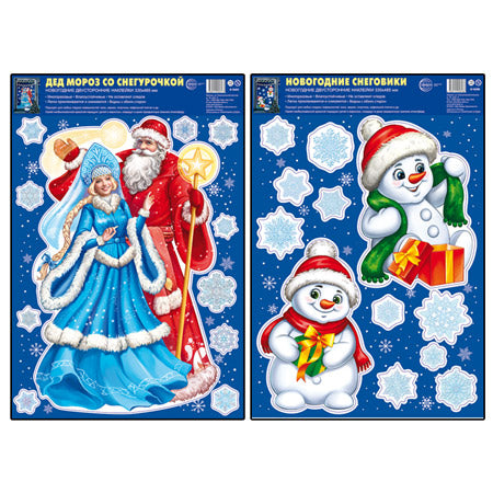 - Н-16491 Новогодние наклейки А3+. Дед Мороз со Снегурочкой (многоразовые, видны с обеих сторон)