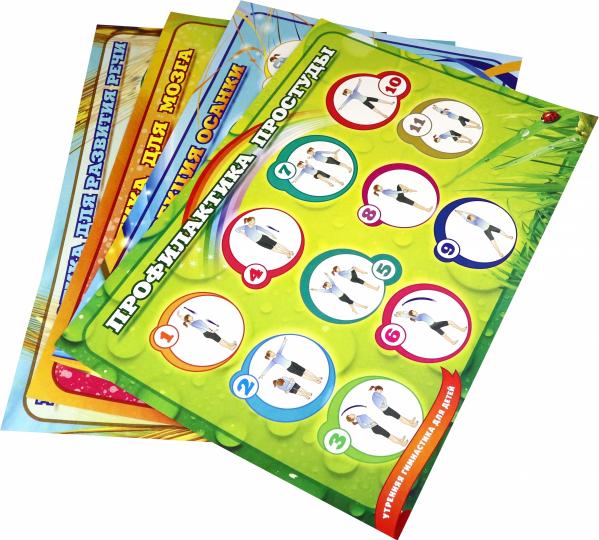 Комплект плакатов "Утренняя гимнастика для детей". 4 плаката с методическим сопровождением. (Формат А2, картон макулатурный, пл. 340)