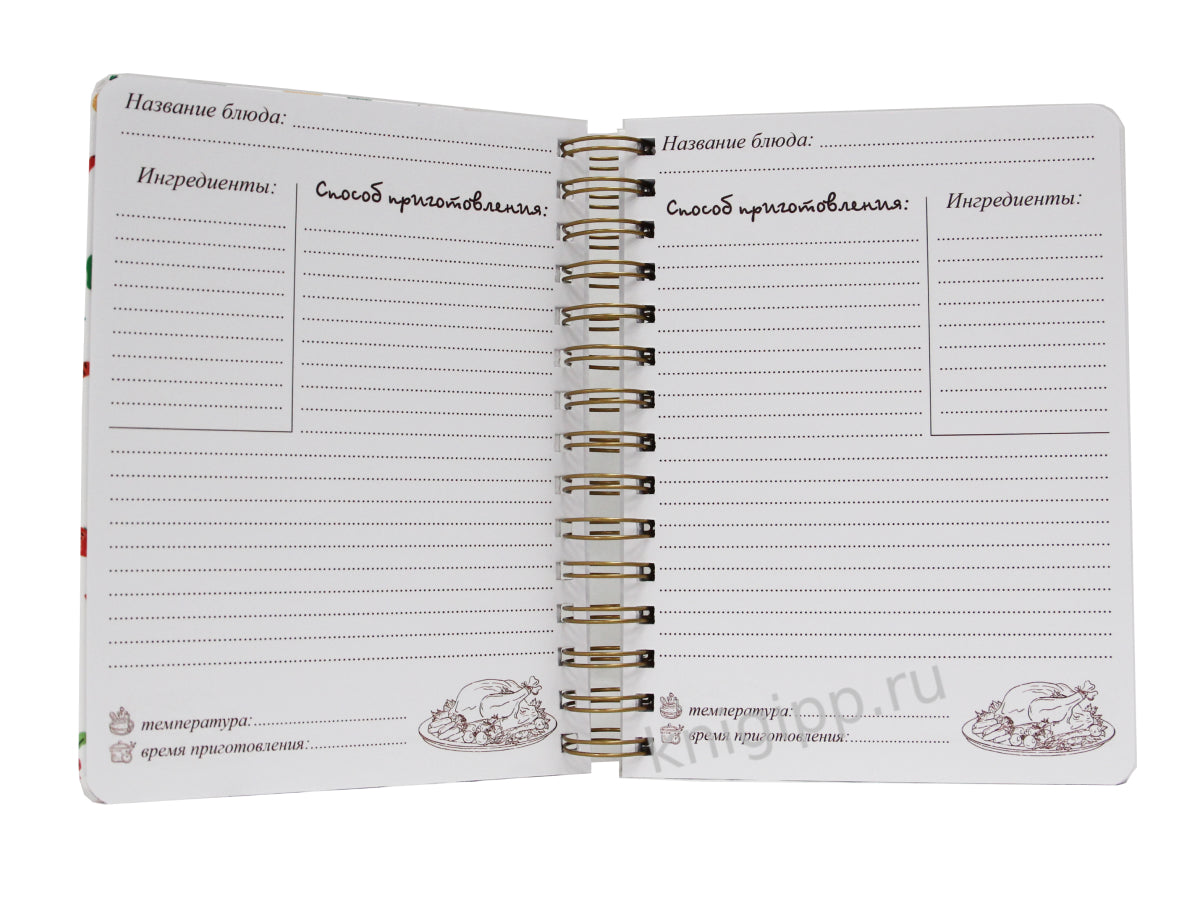 Handling time: 19 days Книги для записи кулинарных рецептов будут отличными помощниками для тех, кто любит готовить и собирать любимые рецепты. Стильное лаконичное оформление, удобный формат, функциональная сетка для записи рецептов, таблица мер и весов – всё это сделает покупку очень приятной!Внутренний блок: офсет.Линовка: линия.Количество листов: 80.Формат: 150х196 мм.Крепление: двойная спираль.Обложка: твердая.Закругленные уголки.