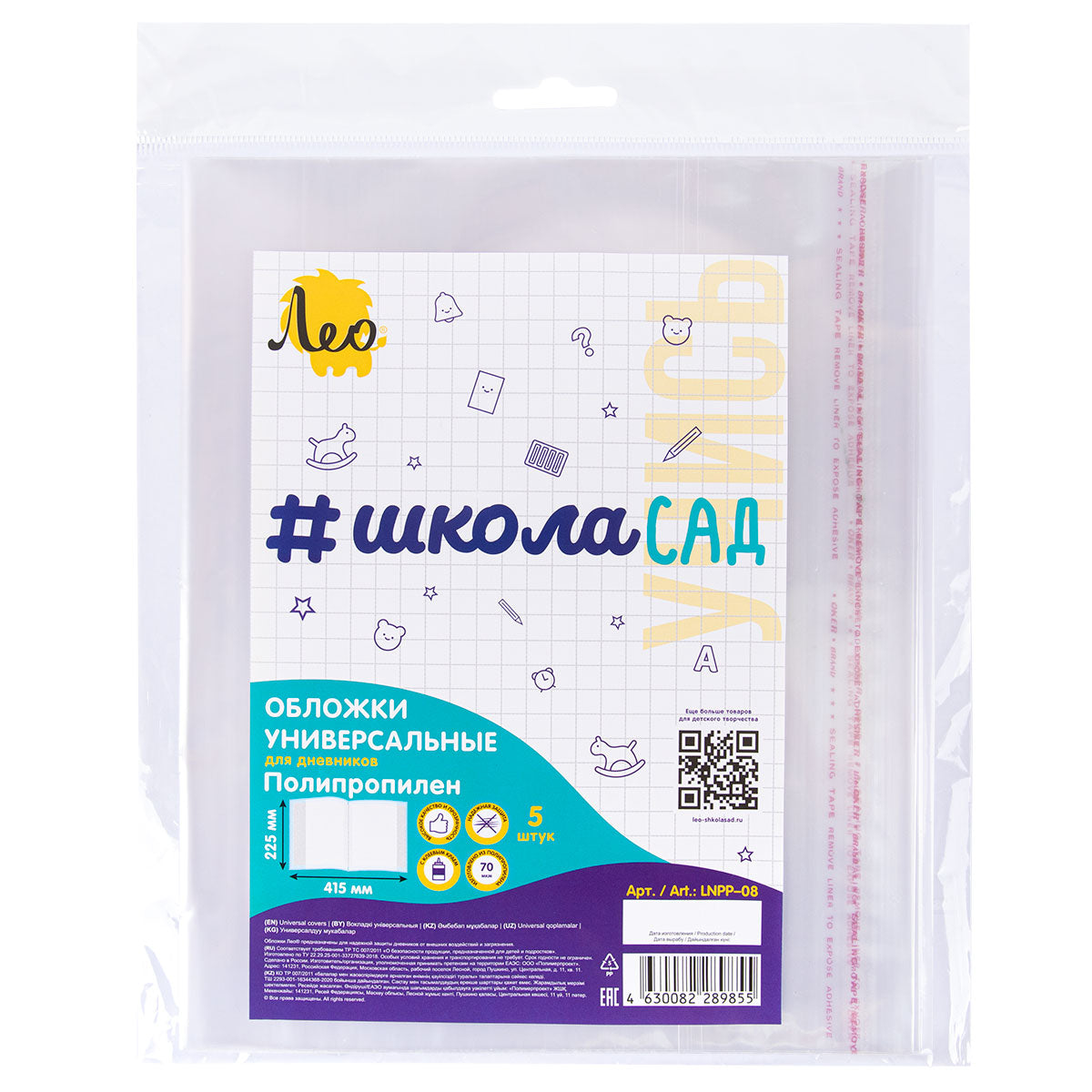 "Лео" "Учись" Обложка универсальная для дневников с клеевым краем LNPP-08 70 мкм ( 225 х 41