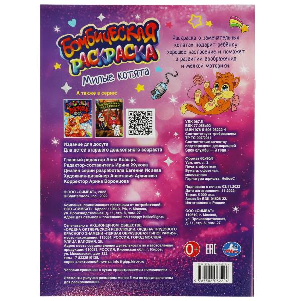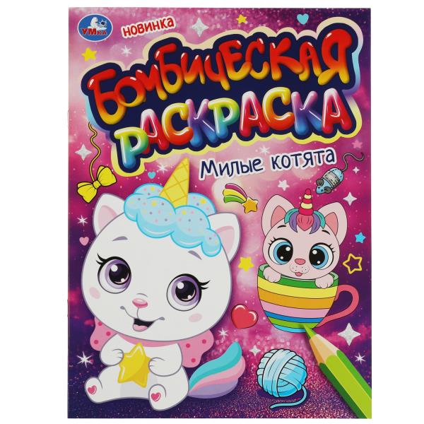 Милые котята. Бомбическая раскраска. 214х290 мм. Скрепка. 16 стр. Умка в кор.50шт