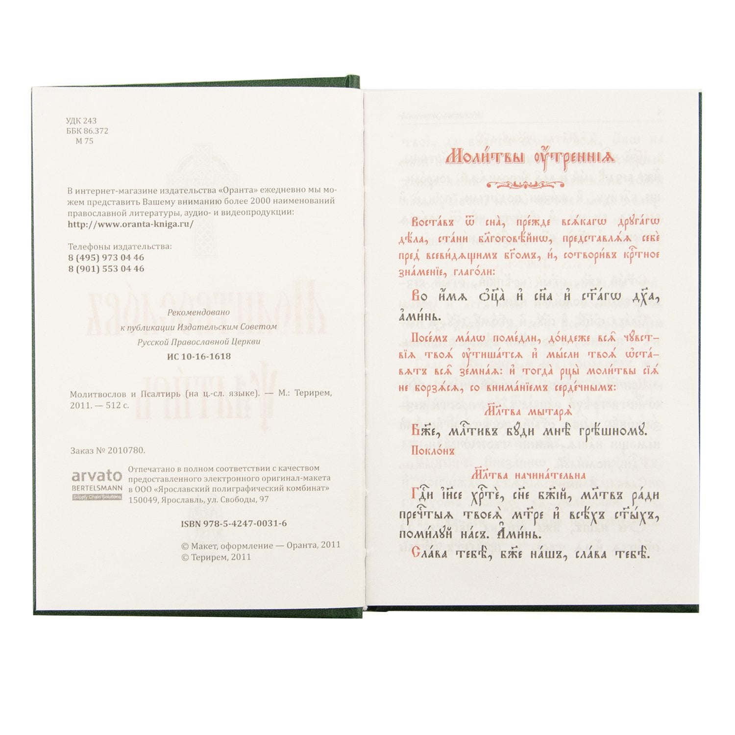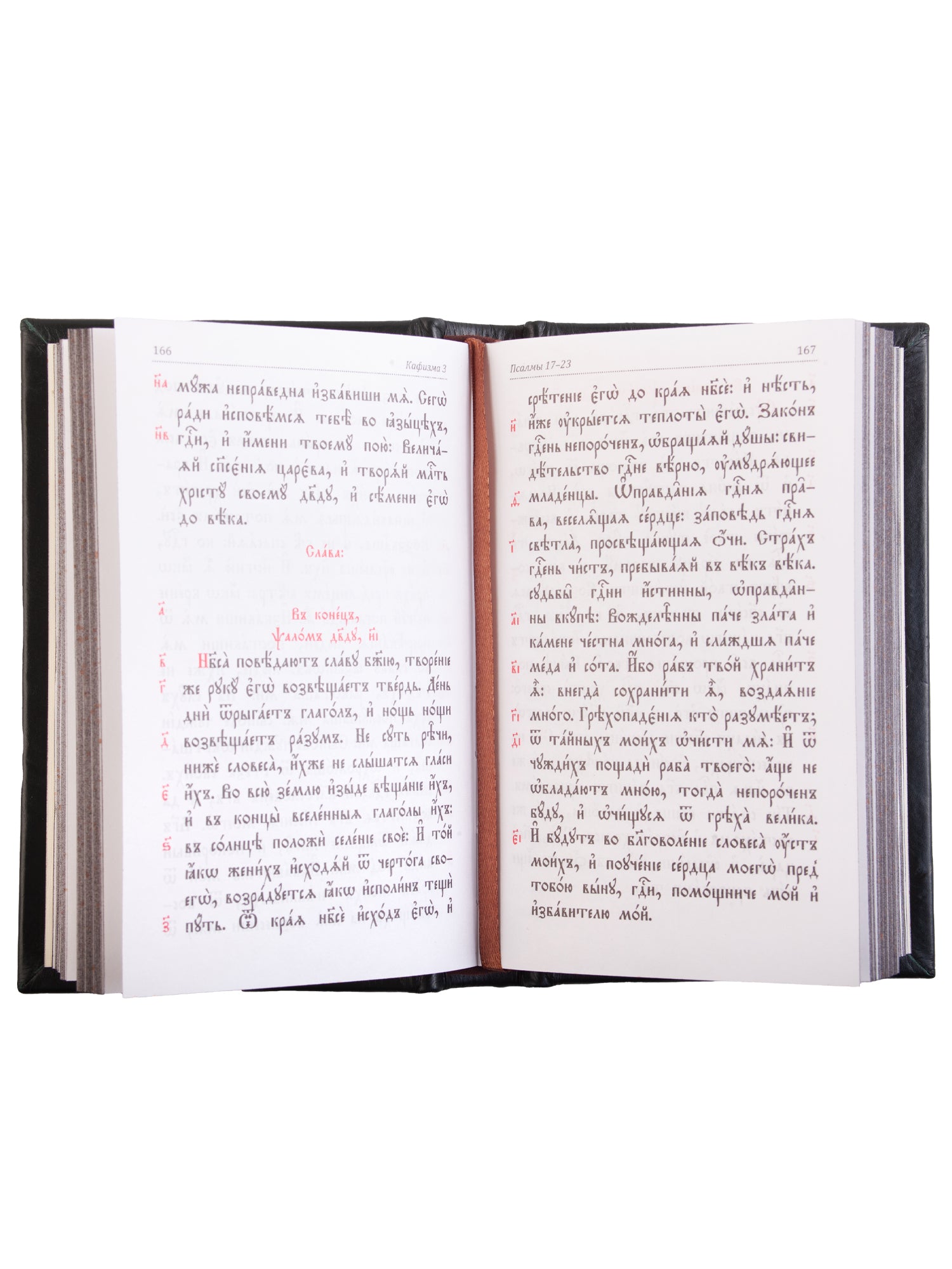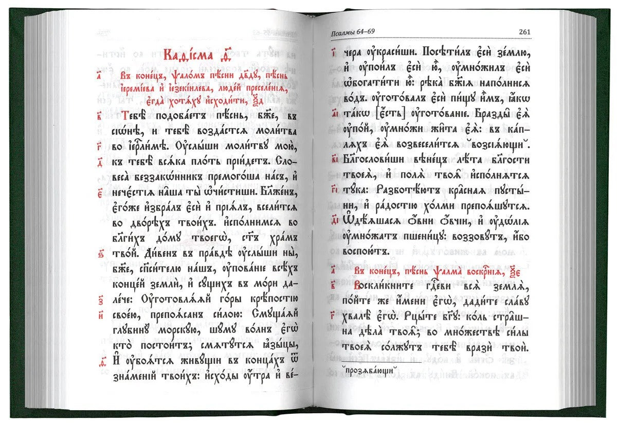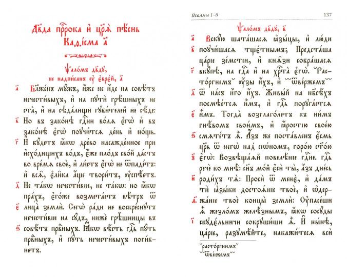 В красиво оформленную книгу, напечатанную на церковнославянском языке с использованием крупного шрифта двух контрастных цветов для лучшего восприятия, вошли утренние и вечерние молитвы православного, каноны ко Сыну Божию, Пресвятой Богородице и Ангелу хранителю и бессмертные псалмы царя и пророка Давида. Чтобы читатель мог извлечь наибольшую пользу из чтения, в издание помещены церковнославянский алфавит, таблица чисел и подробный словарь.