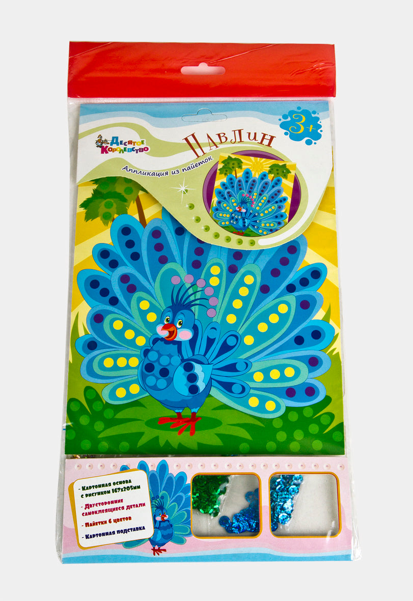 Handling time: 24 days Аппликация из пайеток «Павлин». Состав: картонная основа с рисунком — 1 шт. (16,7 х 20,5 см), двусторонние самоклеящиеся детали 6 цветов (зелёный, жёлтый, синий, фиолетовый, сиреневый, голубой). Игра предназначена для детей от 3 лет. Материал: картон, пластик. Творческая работа развивает мелкую моторику, аккуратность и воображение.