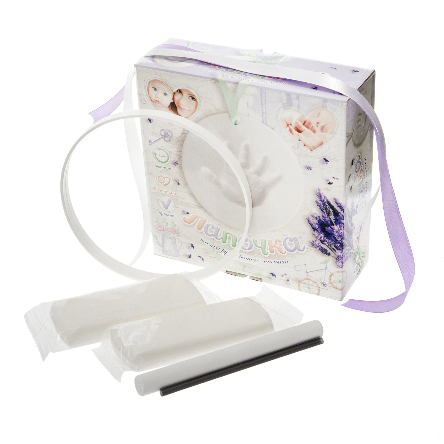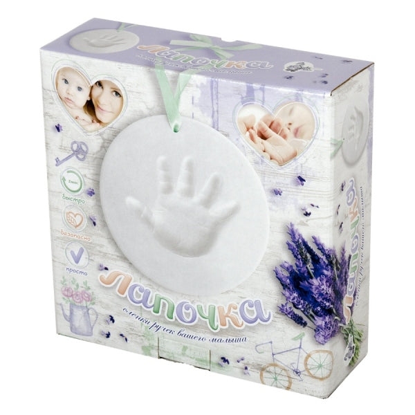Handling time: 14 days Отличный подарок молодым родителям на рождение малыша!Оговоримся сразу, набор для слепков ручек и ножек ни в коем случае не является детской игрушкой, он предназначен только для взрослых.Первый год жизни малыши растут чрезвычайно быстро, и счастливые родители хотят увековечить эти драгоценные мгновения жизни своей крохи, оставить след очаровательных слепков ручек или ножек для семейной истории.В комплекте набора для слепков ручек и ножек «Лапочка» есть все необходимое для того, чтобы без сложных манипуляций сделать бесценный сувенир на память:- самозатвердевающая полимерная глина является основой набора;- рамка для формирования круга;- две цветных ленточки на выбор, чтобы повесить драгоценный слепок на стену;- приспособления для раскатки полимерной глины и пробивки отверстия в слепке;- подробная инструкция по работе с набором.Глина для слепков совершенно безопасна, не токсична, не требует тепловой обработки и позволяет сделать несколько проб до высыхания. Тем не менее, при получении слепков ручек и ножек, настоятельно рекомендуем соблюдать несколько простых правил:- держать подальше от малыша мелкие предметы;- не позволяйте ребенку играть с глиной, брать в рот, тереть глаза;- до и после создания отпечатков помойте ножки и ручки ребенка.«Десятое королевство» не единственный производитель наборов для «увековечивания» отпечатков ножек и ручек малыша, но, пожалуй, первый, кто предложил «разумную» цену при добротном качестве.