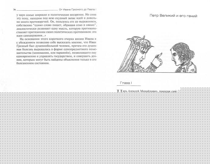 Handling time: 24 days Выдающийся русский ученый Павел Ковалевский (1850-1931) соединял в себе две ипостаси - историка и психиатра. Сочетая практическую работу в психиатрических больницах и преподавательскую деятельность, будучи профессором медицинских факультетов Варшавского и Санкт-Петербургского университетов, он в то же время написал ряд исторических работ. В эту книгу вошли психологические портреты четырех русских царей - Ивана Грозного, Петра I, Петра III и Павла I. Следуя за автором, мы подмечаем не только их поступки, но и внутренние побуждения, на которые влияет множество обстоятельств - порой малозаметных, но дающих психиатру пищу для размышлений. Павел Ковалевский рассматривает эти обстоятельства вкупе с наследственностью и объясняет, как из мальчика Ивана вырос одержимый манией преследования злодей, а из мальчика Петра великий преобразователь Русской земли, почему правление Петра III неизбежно должно было закончиться несчастьем для него самого и почему Павел I оказался в плену собственных фантазий и так бездарно распорядился своей властью.