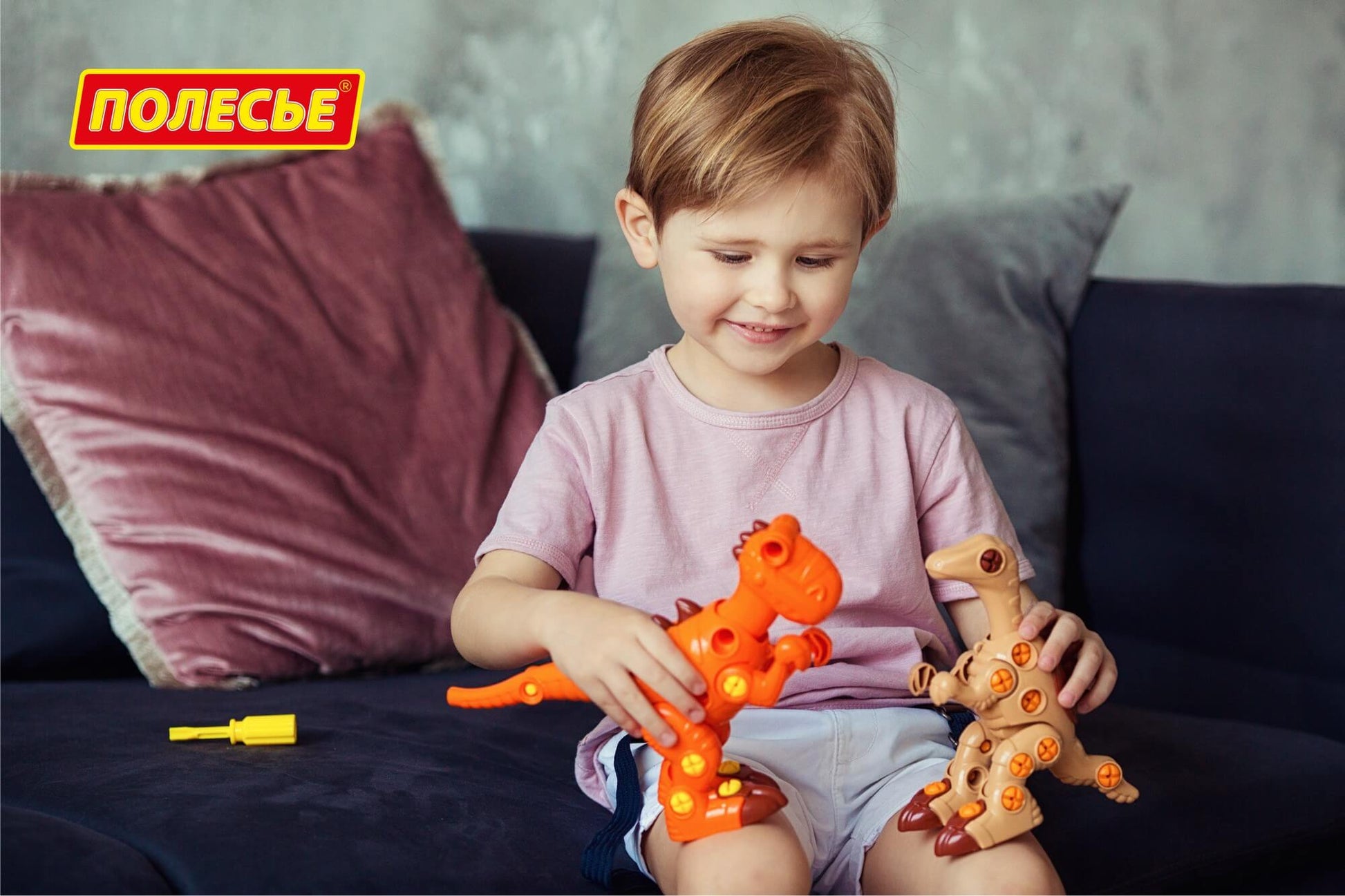 Фабрика «Полесье» предлагает детям стать маленькими палеонтологами и представляет серию конструкторов в виде динозавров. Мальчики и девочки познакомятся с "Тираннозавром", "Стегозавром", "Трицератопсом", "Диплодоком", "Велоцираптором". Игрушка выполнена в ярких цветах, из качественного материала, имеет округлую форму. Все элементы представлены в виде конструктора, который соединяется с помощью пластмассовых шурупов. В набор включена крестообразная отвёртка. Этот инструмент сделает игру интереснее и позволит разбирать\ собирать динозавров. Игра с таким конструктором знакомит ребёнка с древним миром животных. А также развивает фантазию, учит моделированию и конструированию.